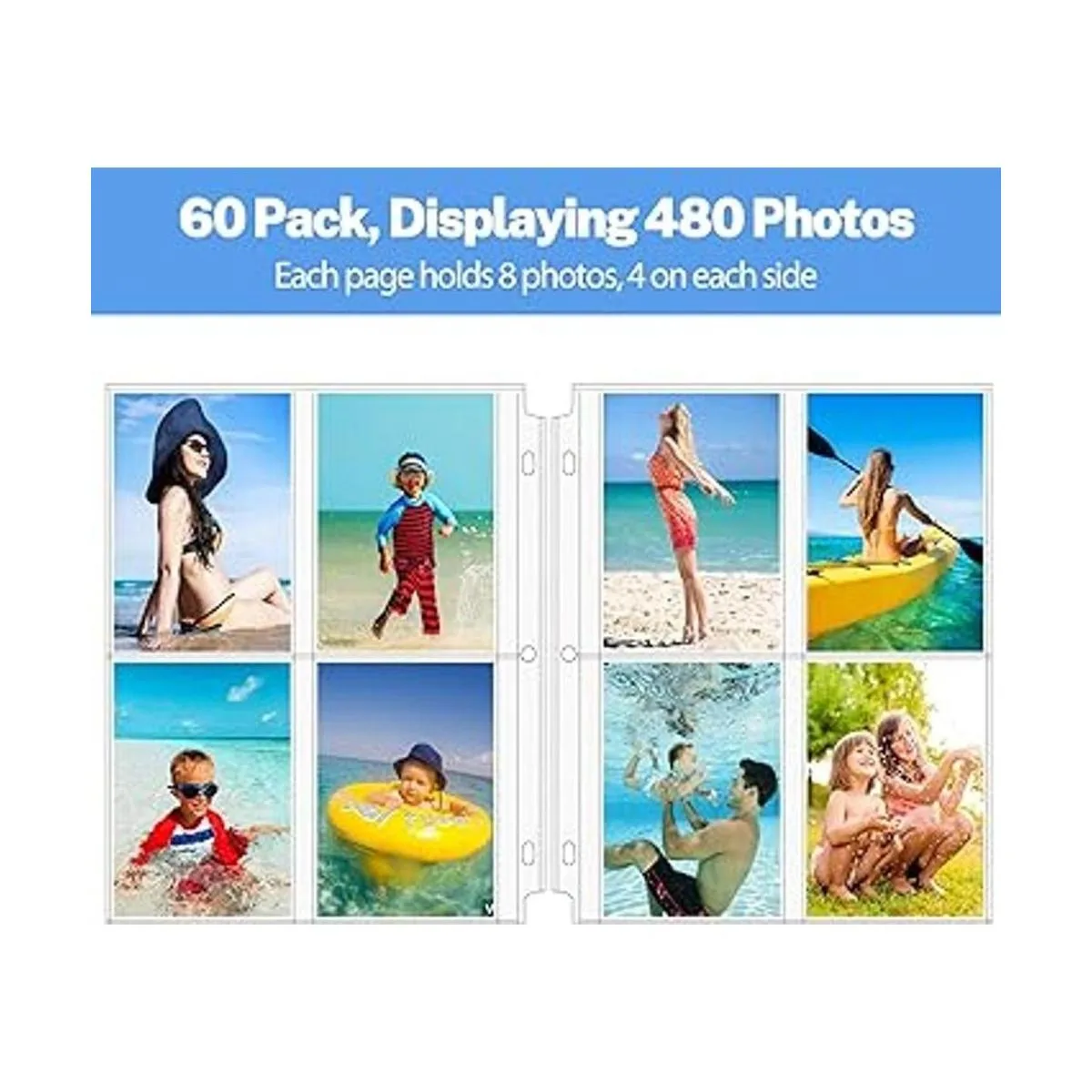 MaxGear Fundas de fotos para carpeta de 3 anillos, 3.5 x 5, 60 unidades para 480 fotos, páginas de fotos de archivo, páginas de álbum de fotos, hojas de fotos, protector de hojas de fotos, páginas de repuesto de 8.5 x 11, 4 bolsillos por página con capacidad para 8 imágenes