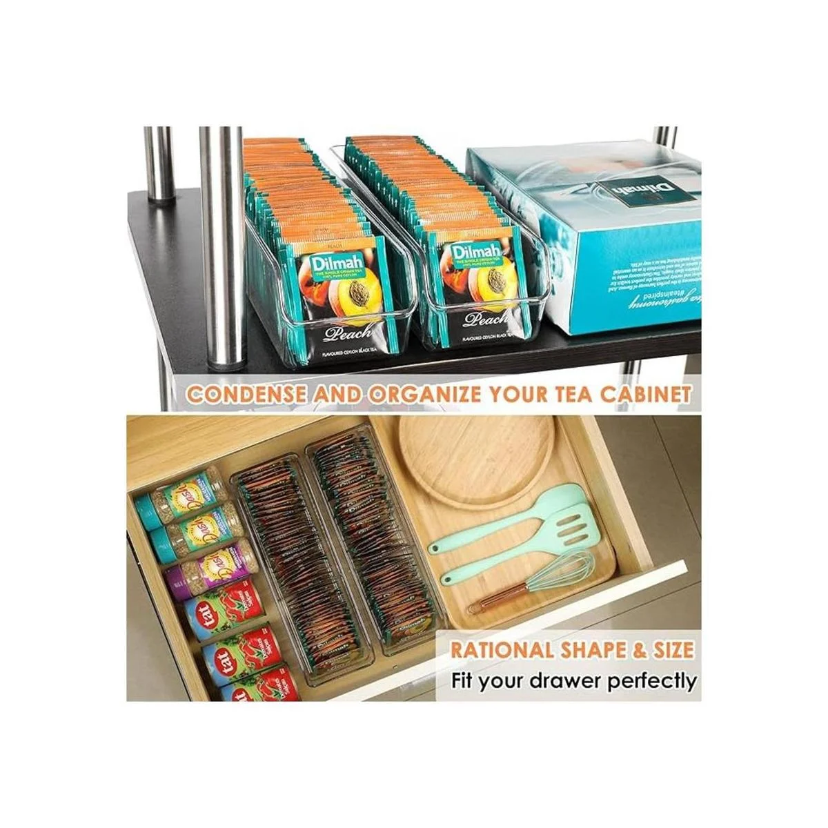 Amplia aplicación: este contenedor organizador se puede utilizar perfectamente como organizador de bolsas de té, soporte de paquetes de azúcar, organizador de bolsas de especias, organizador de mezcladores de aderezos, organizador de cápsulas de café, organizador de edulcorantes y cualquier paquete de productos en tu cocina, despensa, armario, encimera. Mantendrá tu espacio organizado y ordenado mientras ahorra más espacio.