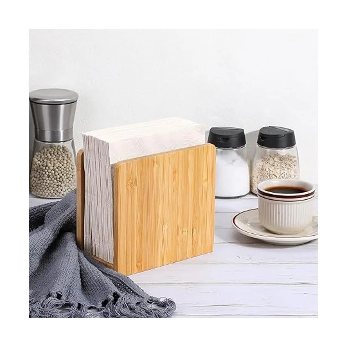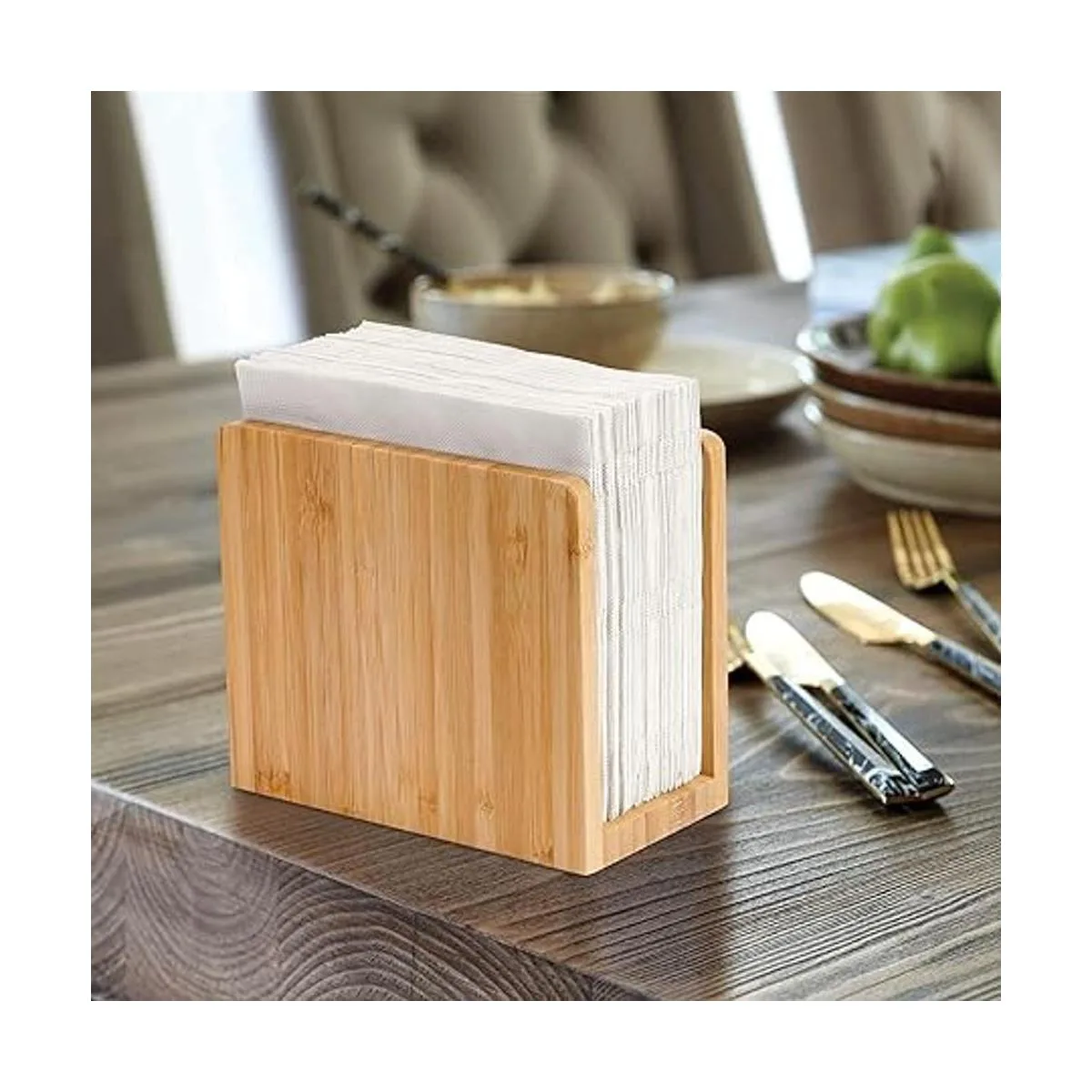 MaxGear Servilletero de bambú para mesas, dispensador de pañuelos independiente de mesa, soporte dispensador de servilletas de madera, organizador de servilletas para cocina, restaurante, decoración del hogar, paquete de 1