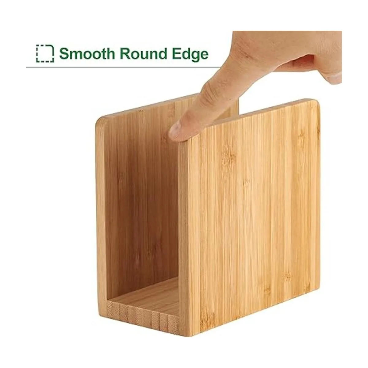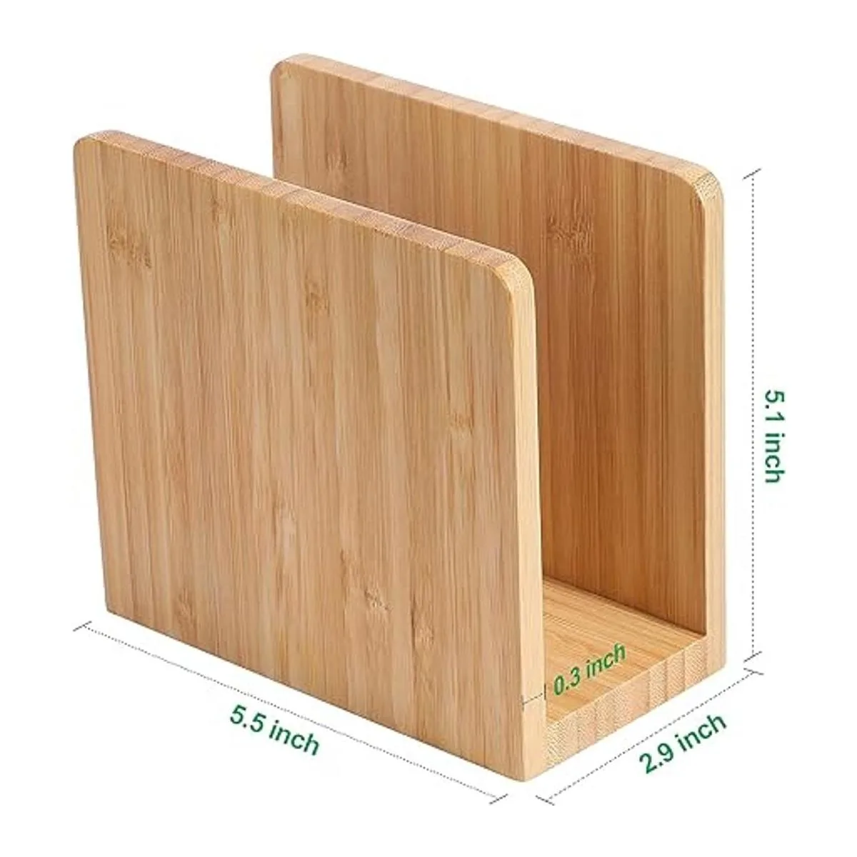 Calidad resistente y duradera: acabado con todo el bambú y 0.315 in de grosor 0.31 pulgadas, no hay necesidad de preocuparse por la durabilidad y la forma después de un uso a largo plazo, construcción sólida con bordes redondos que hace que el servilletero se sienta genial al tacto.