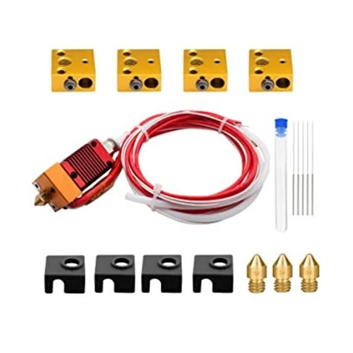 Mejor experiencia de impresión 3D: hemos hecho un paquete de producto práctico y eficaz para tu experiencia. Lo que obtendrás en la caja: 1 juego de Hotend ensamblado de 24 V, 3 boquillas de latón, 4 bloques de calefacción de aluminio dorado, 4 piezas de cubierta de silicona de bloque de calefacción negro, 4 piezas de impresión 3D MK8, aguja de acero de limpieza de boquilla de 0.016 in, 1 juego/5 piezas, regalo pequeño al azar.