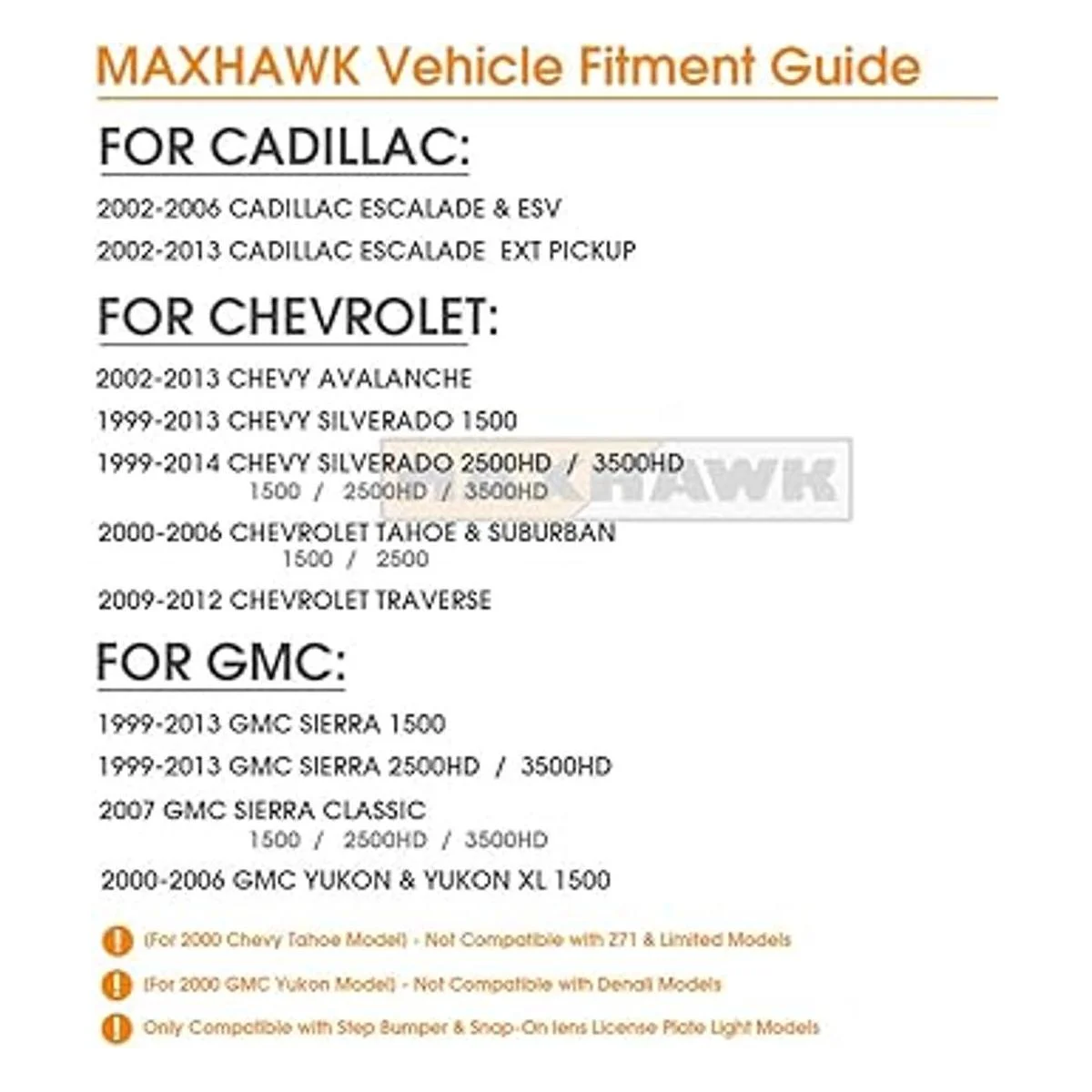 MAXHAWK Lámpara de matrícula LED completa de repuesto para Chevy Silverado Tahoe Suburban GMC Sierra 1500 2500 3500 Yukon XL Cadillac Escalade