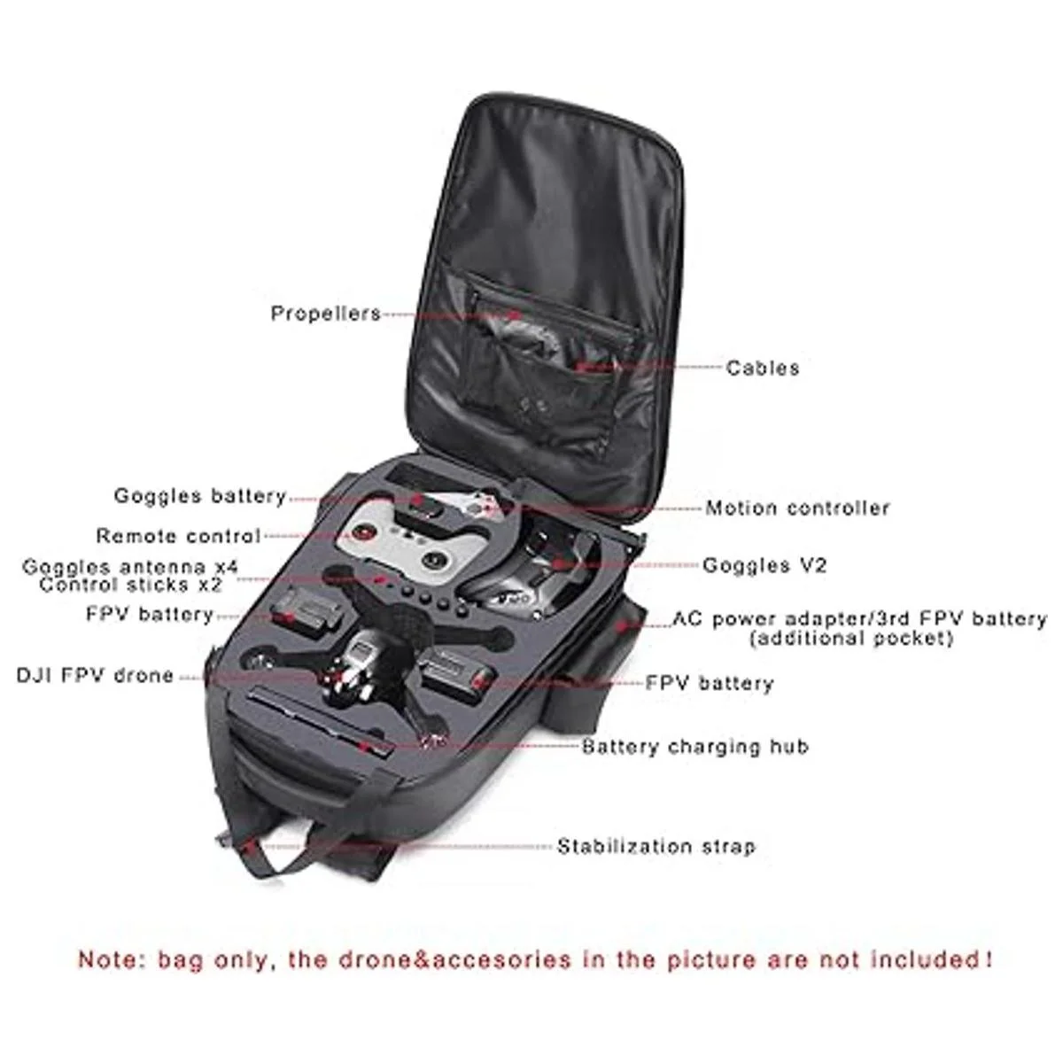 Fácil de usar y transportar: no hay necesidad de montar, se puede utilizar directamente cuando recibas la mochila FPV. Las correas de hombro ajustables y el cómodo mango de la mochila FPV ofrecen dos formas de transporte, que te proporcionan una sensación más asombrosa, excelente y cómoda.