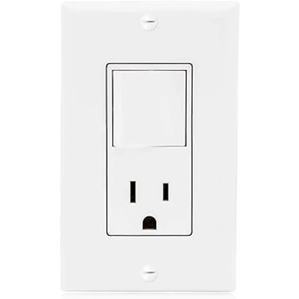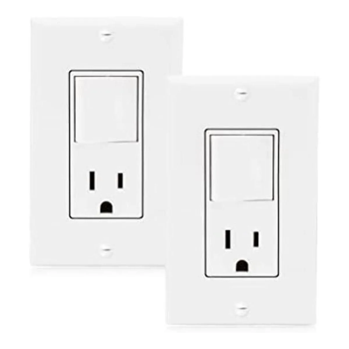 Interruptor de luz decorativo de un solo polo, combinación de salida, paquete de 2. Este paquete de 2 interruptores combinados es perfecto para optimizar tu espacio al tener tanto un interruptor como una toma de corriente en uno.
