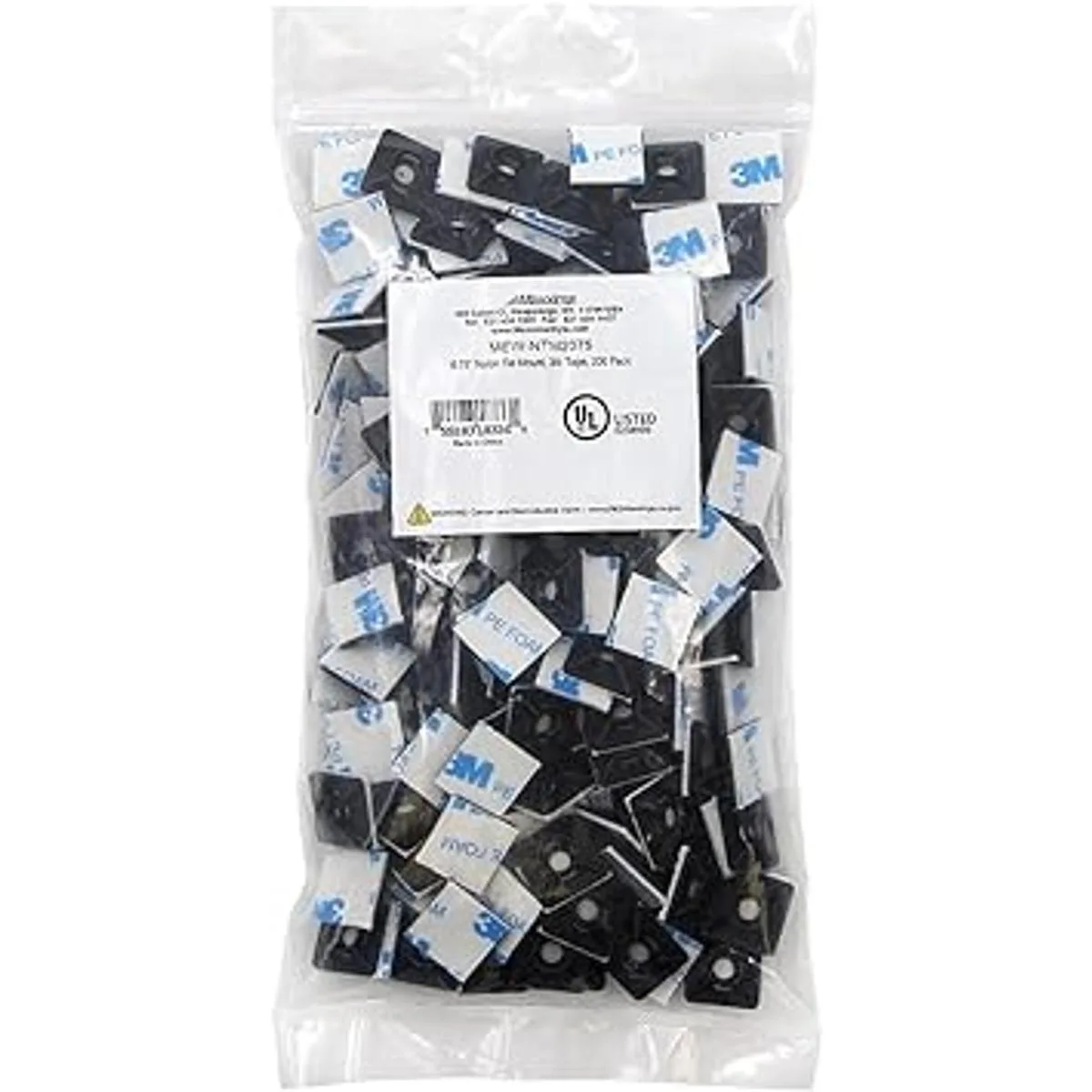 Maxxima Soportes de sujeción con cremallera de 0.75 pulgadas, 3M cinta autoadhesiva almohadilla de montaje anclajes de gestión de ataduras de cables, organizadores de soporte de alambre, negro, paquete de 200