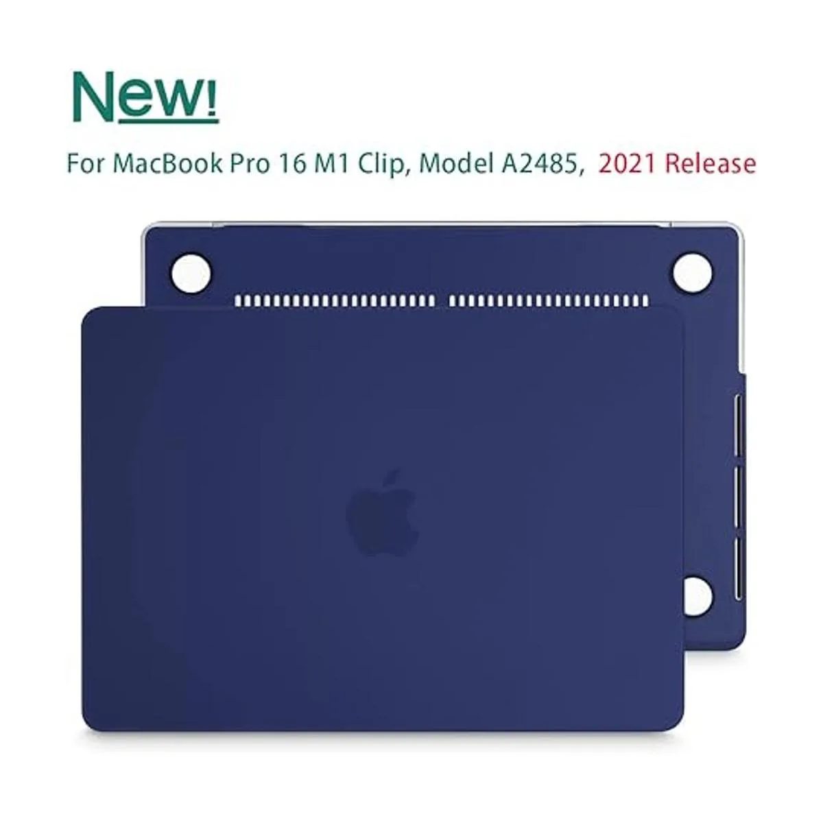May Chen Compatible con MacBook Pro de 16 pulgadas, modelo A2485 M1 ProMax, carcasa rígida de plástico con funda de teclado y protector de pantalla para MacBook Pro 16 con Touch ID, color azul marino mate