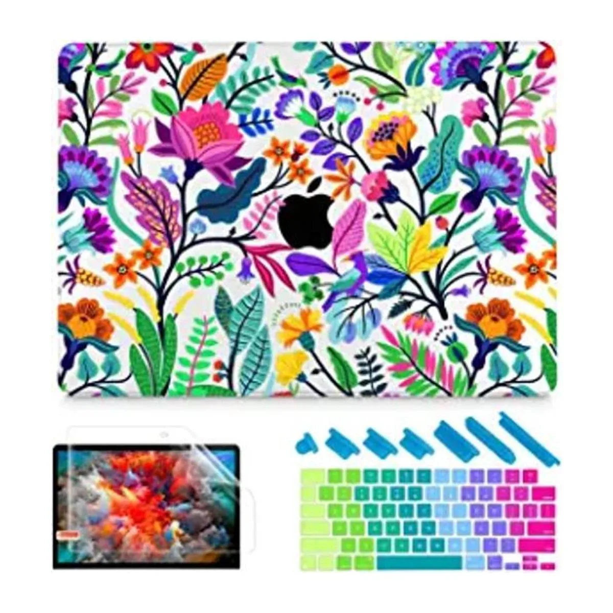 May Chen Funda compatible con MacBook Pro de 14 pulgadas modelo A2442 M1 Pro o M1 Max chip 2021 2022, diseño de hojas florales para jardín, arco iris, flores coloridas brillantes