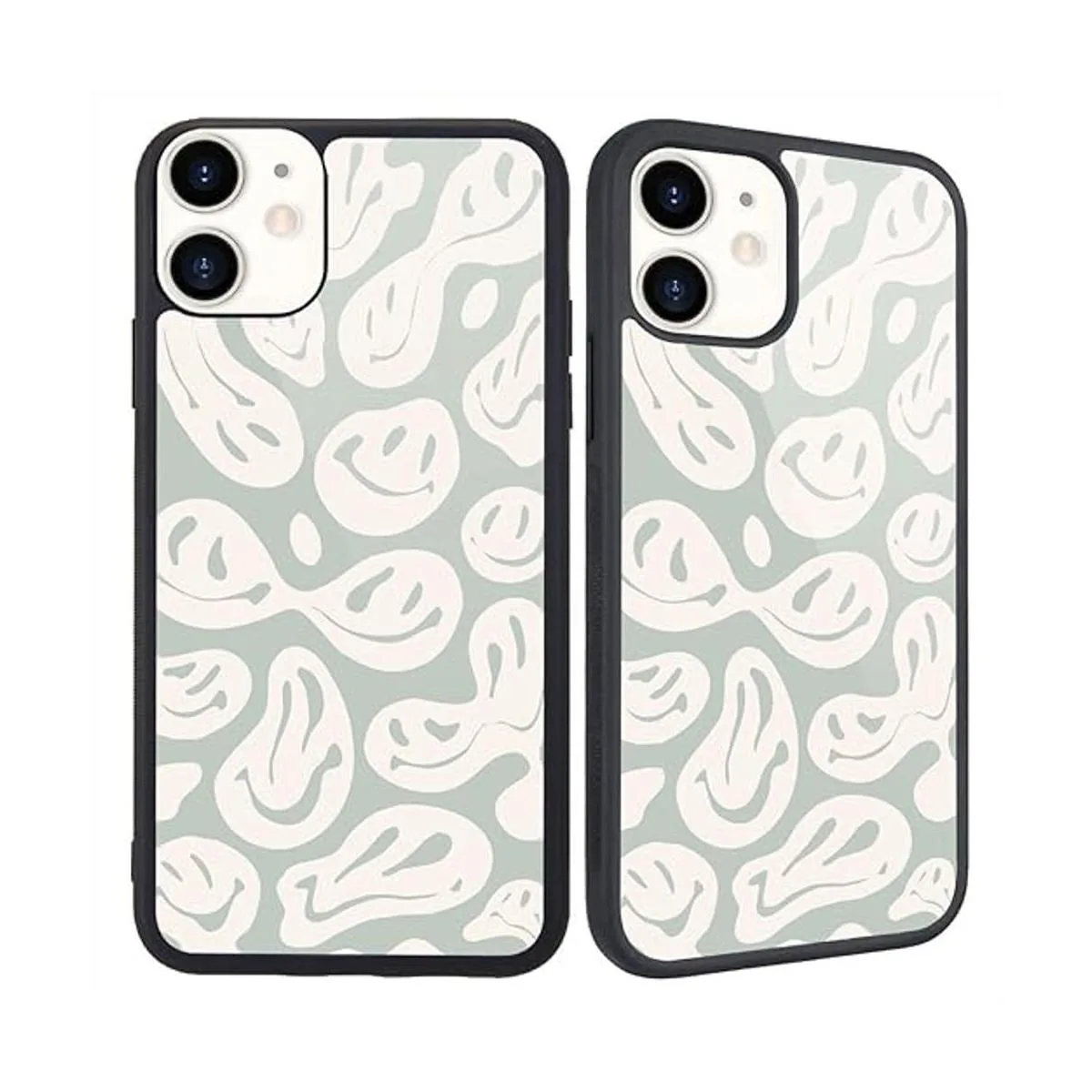 MAYCARI Funda compatible con iPhone 11 para niños y mujeres Happy Smile Face Hippie, cubierta trasera rígida con diseño de collage indie de triple color, funda protectora de TPU suave