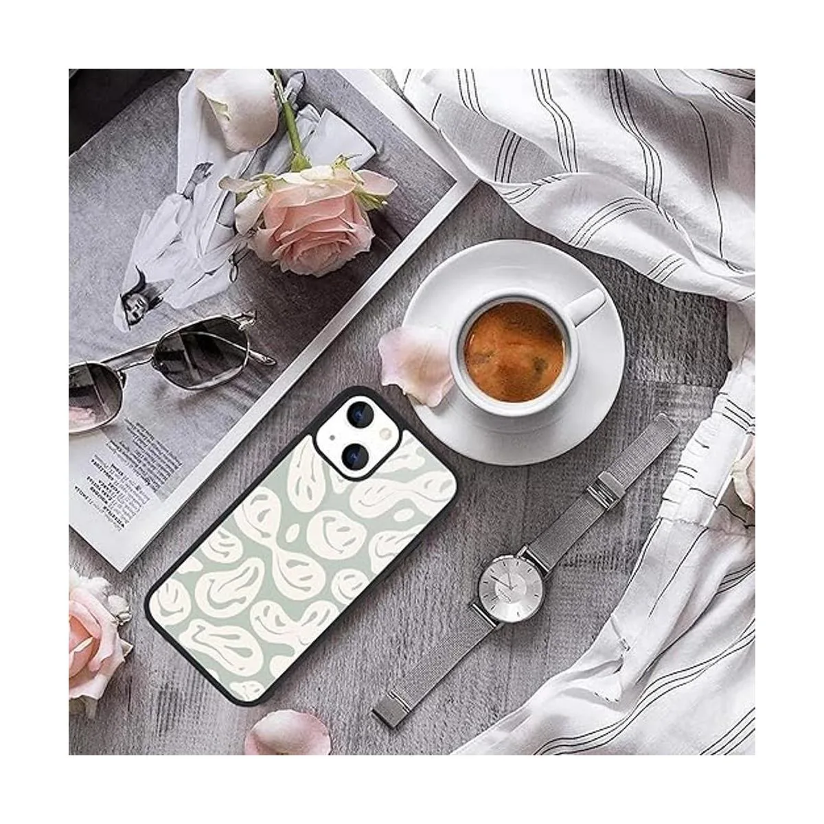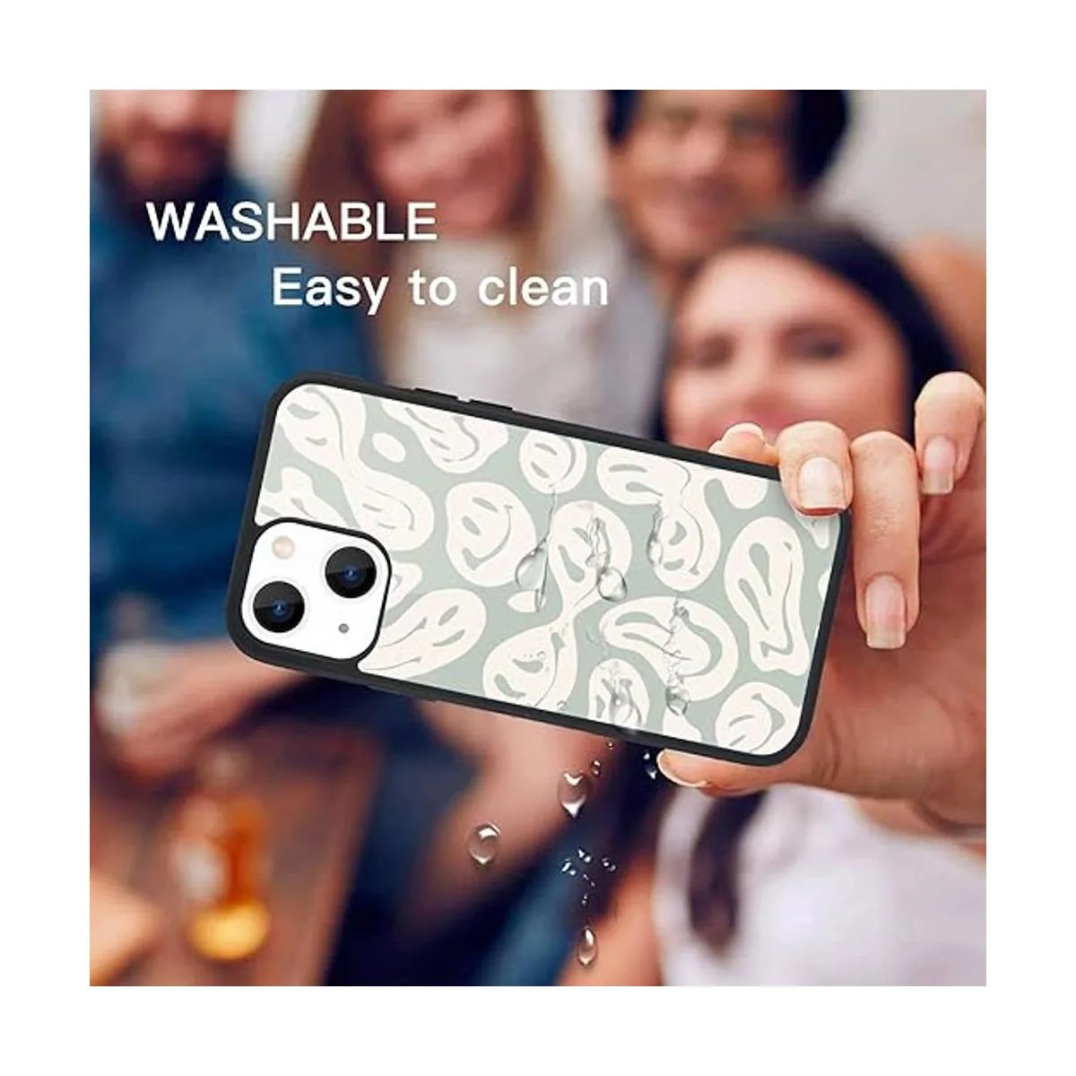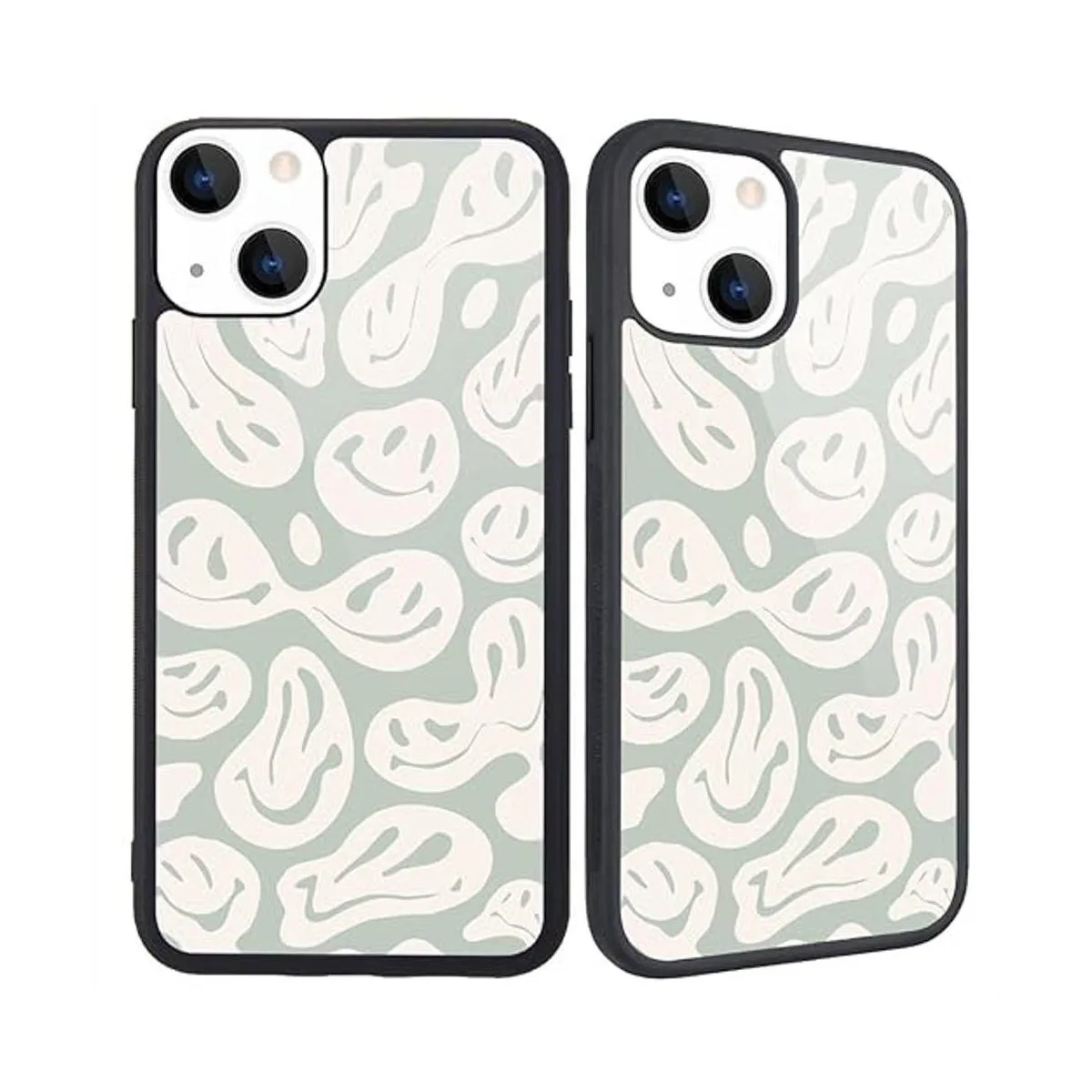MAYCARI Funda compatible con iPhone 13 para niños y mujeres, con cara de sonrisa feliz, parte trasera dura con diseño de collage indie de tres pies, funda protectora de TPU suave