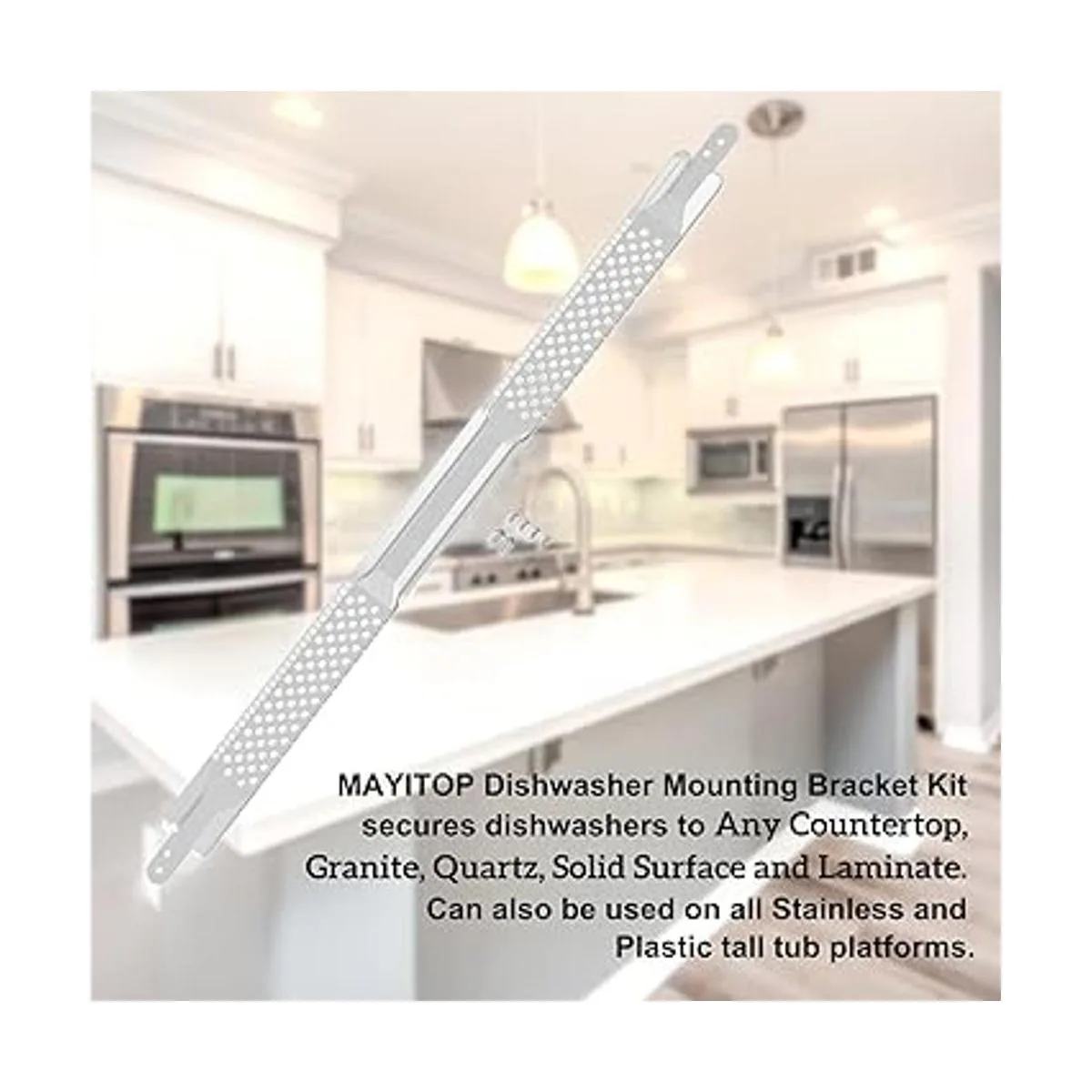 MAYITOP El kit de soporte de montaje para lavavajillas asegura los lavavajillas a cualquier encimera, granito, cuarzo, superficie sólida y laminado. También se puede utilizar en todas las plataformas altas de acero inoxidable y plástico.