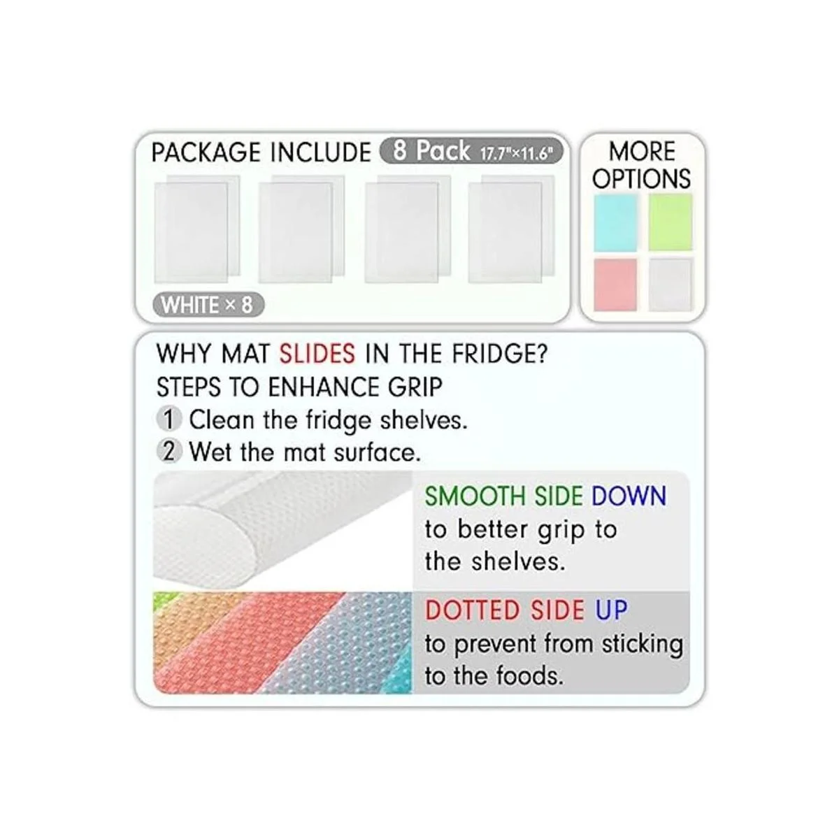 MayNest Juego de 8 fundas para la heladera, fundas lavables, accesorios de cocina para el hogar, organización para los estantes de vidrio del congelador y estantes de rejilla para cajones de armarios 8 blancos