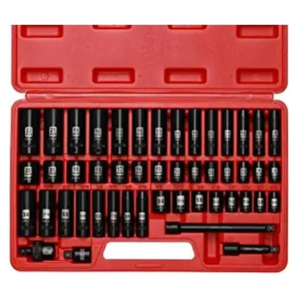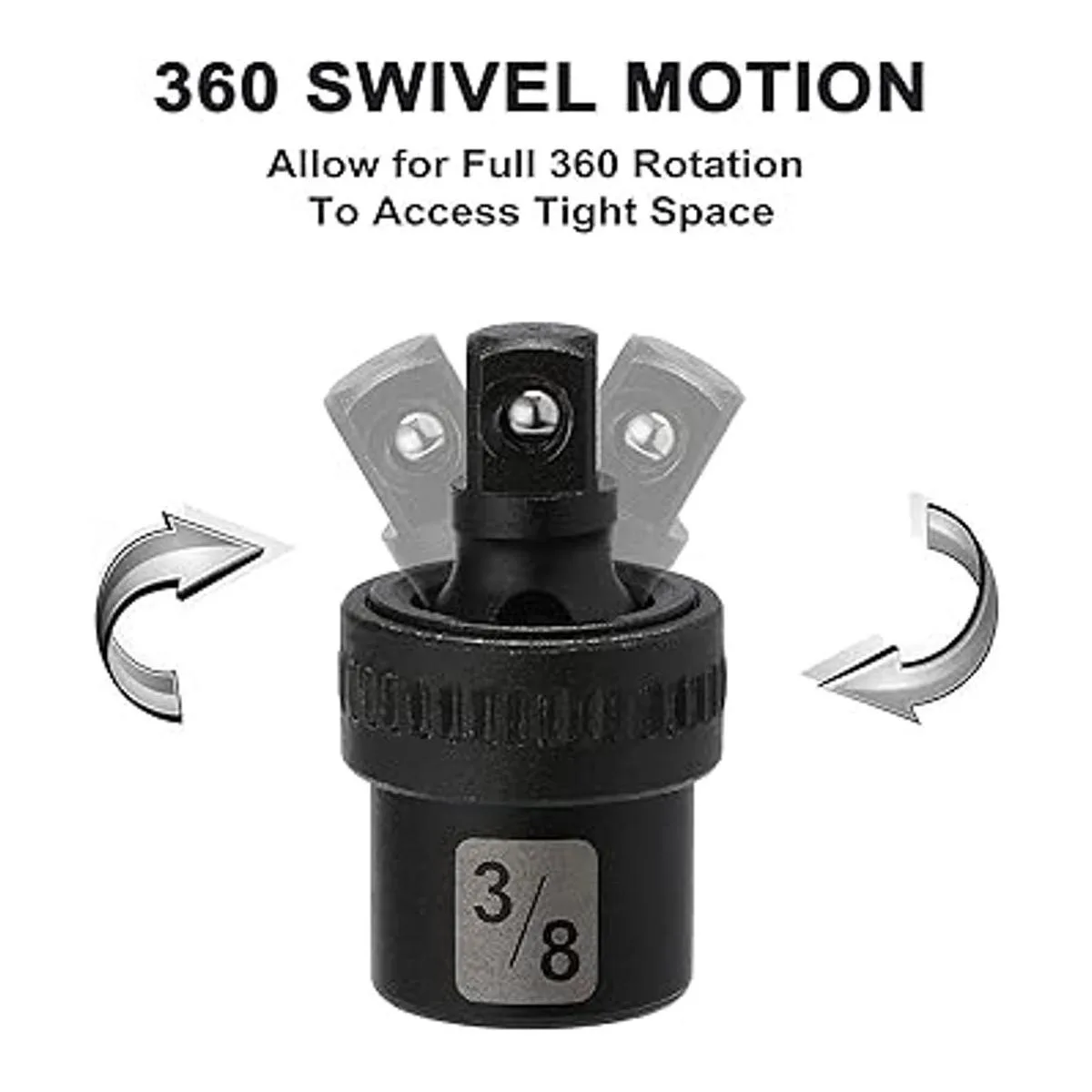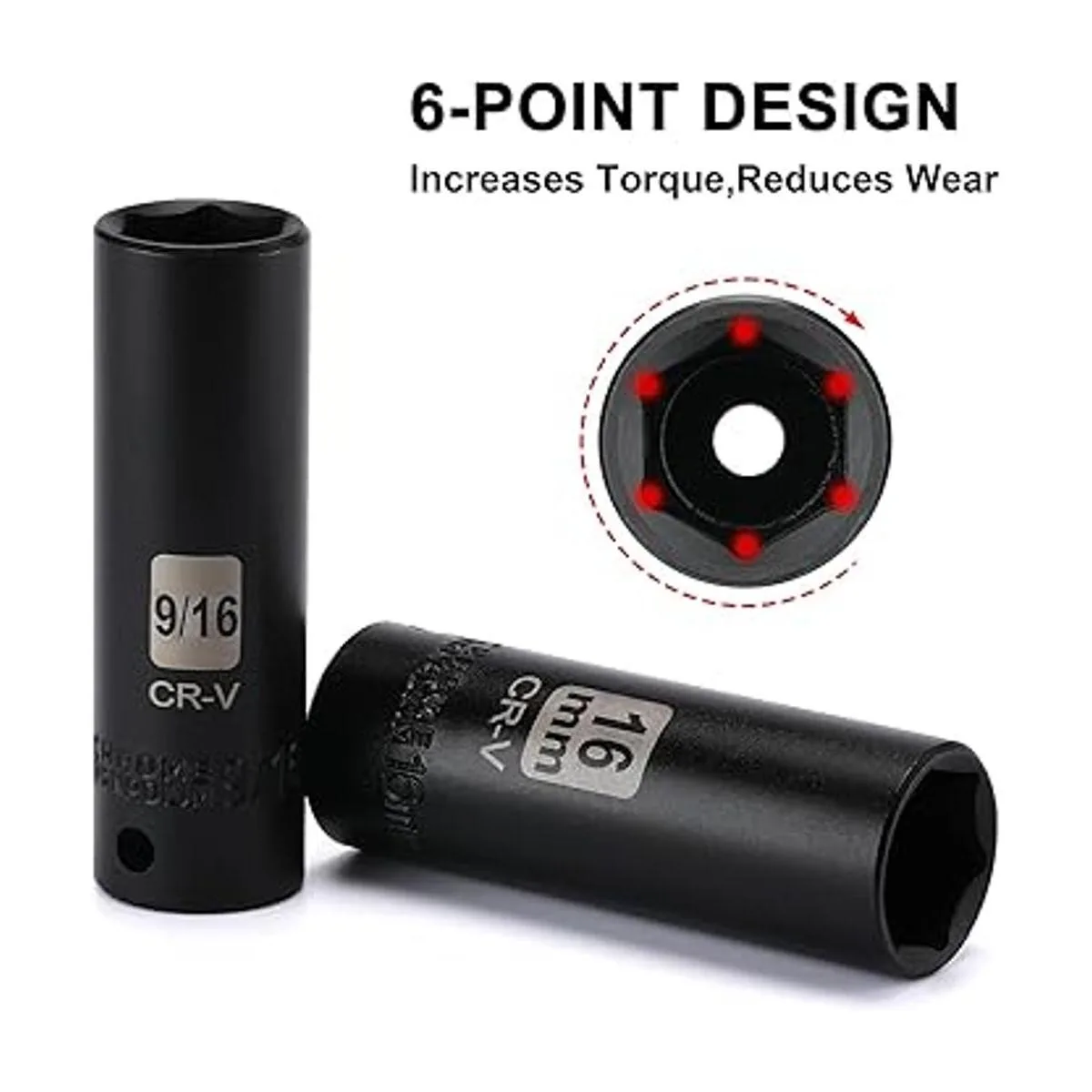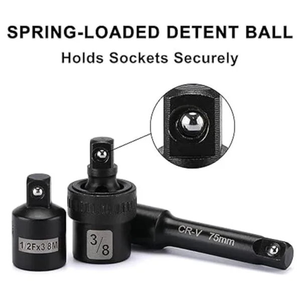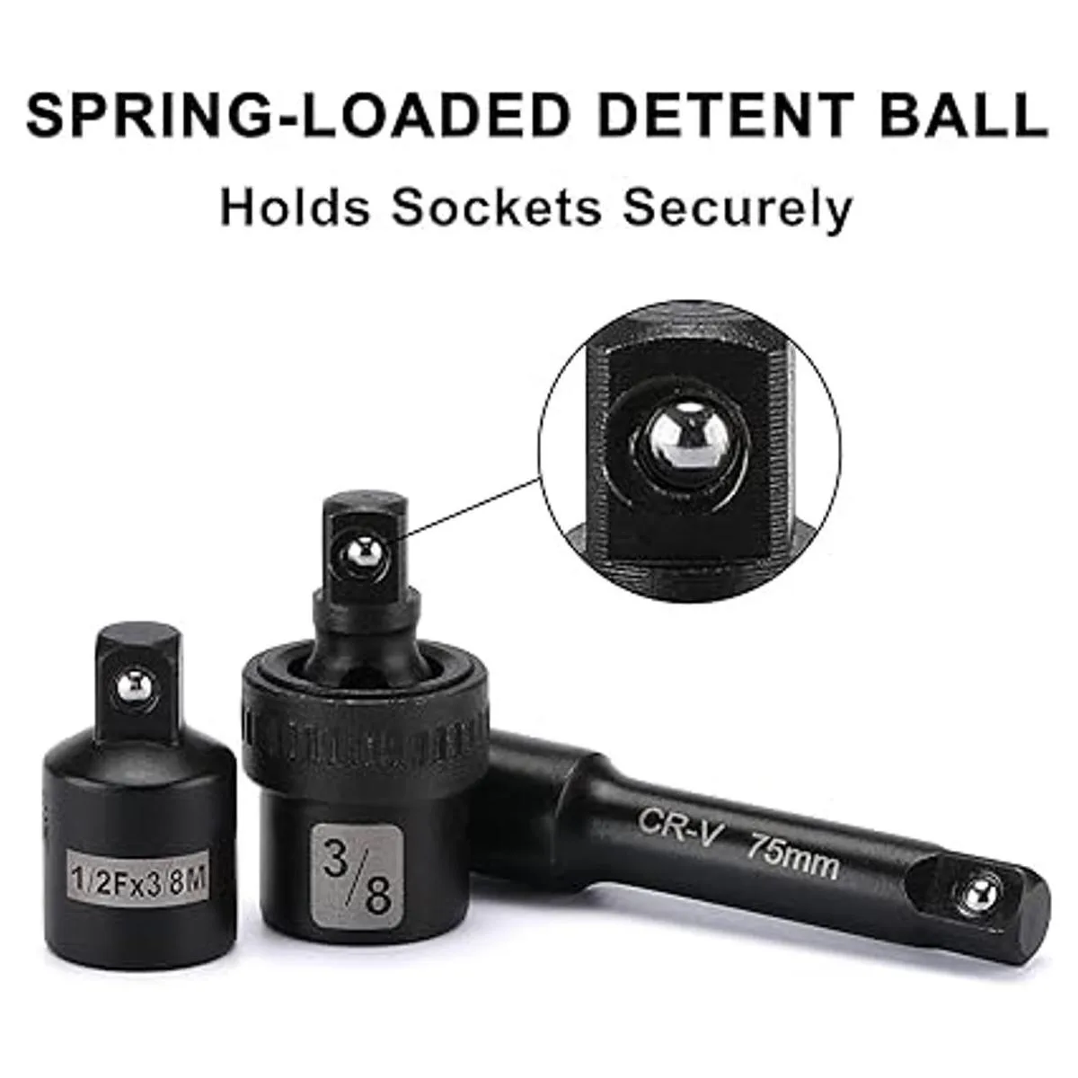 Mayouko Juego de 48 llaves de impacto de accionamiento de 38 pulgadas, SAEmétrico, 6 puntos, CRV, incluye barra de extensión, adaptador, junta universal