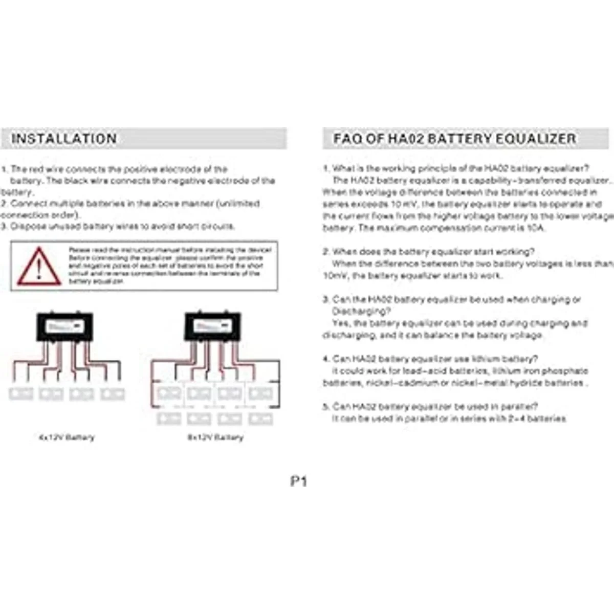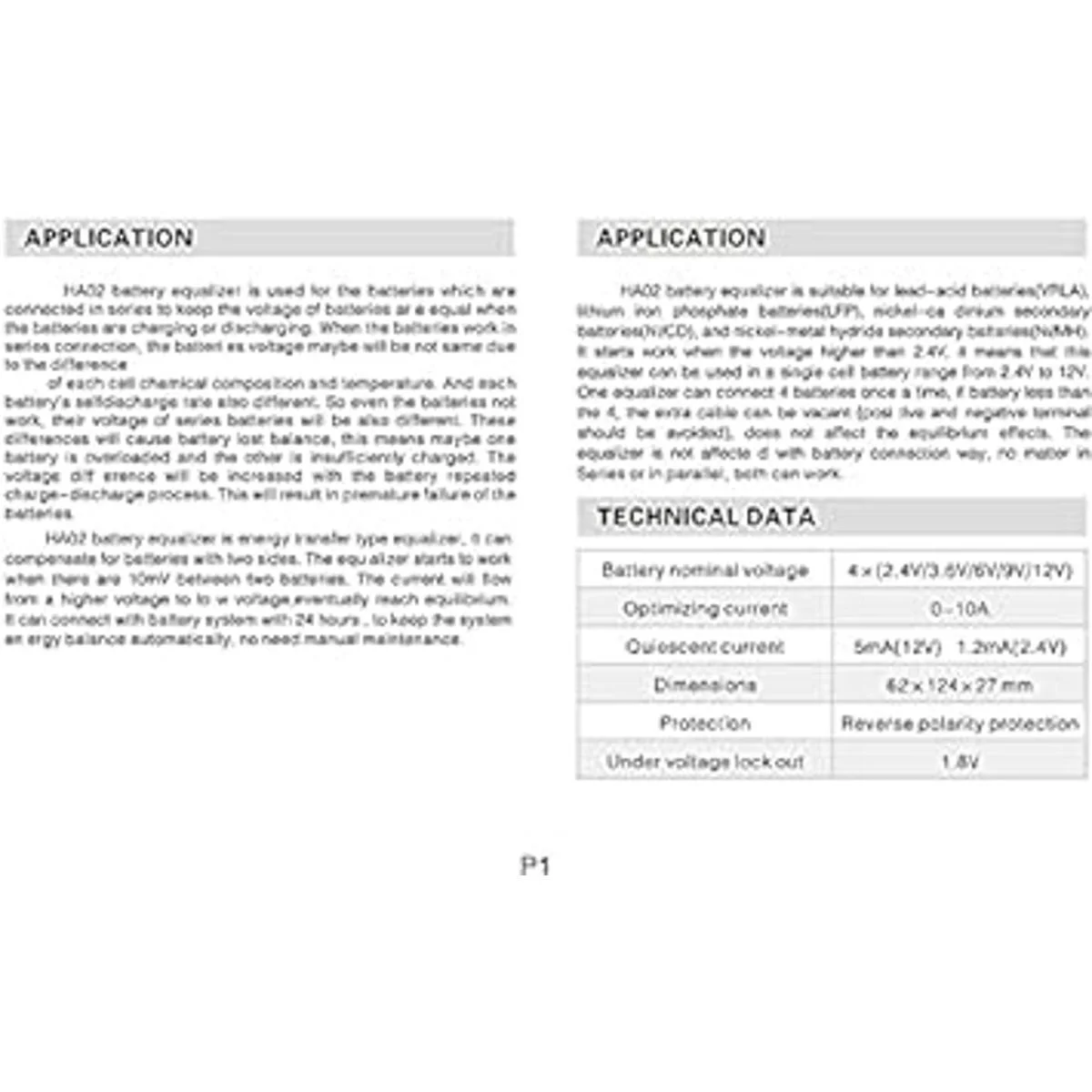 El ecualizador de batería HA02 puede conectar baterías de 4 x 12 V, la corriente máxima de compensación es de 10 A.