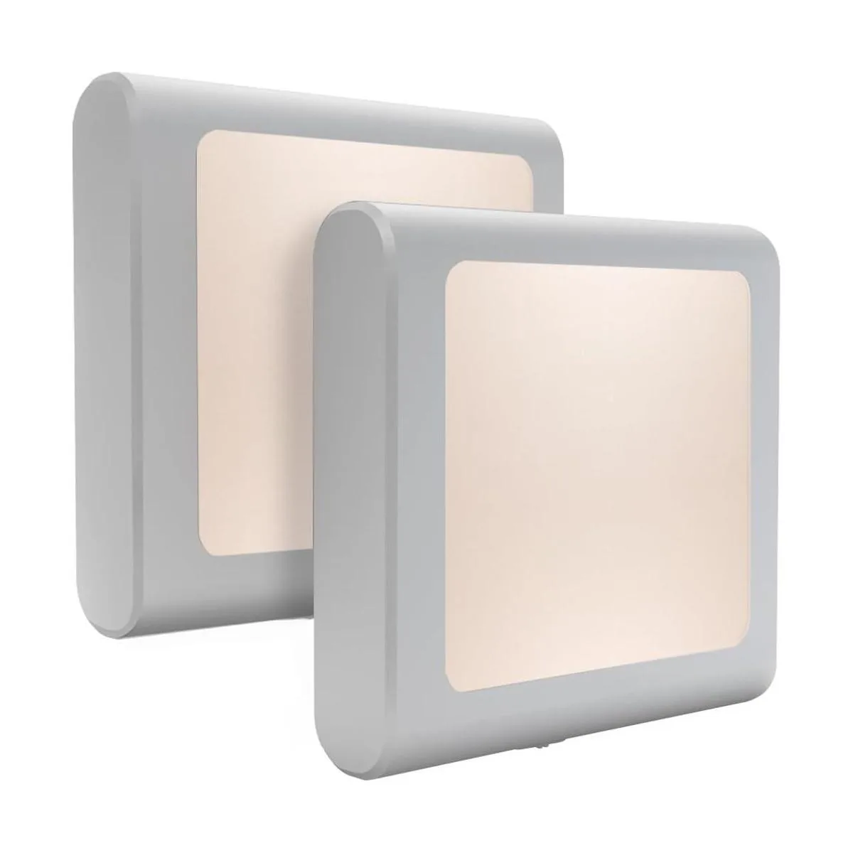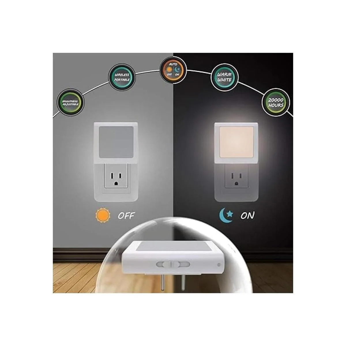 MAZTEK Luz nocturna LED enchufable con sensor automático del atardecer al amanecer, brillo ajustable, luces blancas cálidas para pasillo, dormitorio, habitación de los niños, cocina, escalera, paquete de 2
