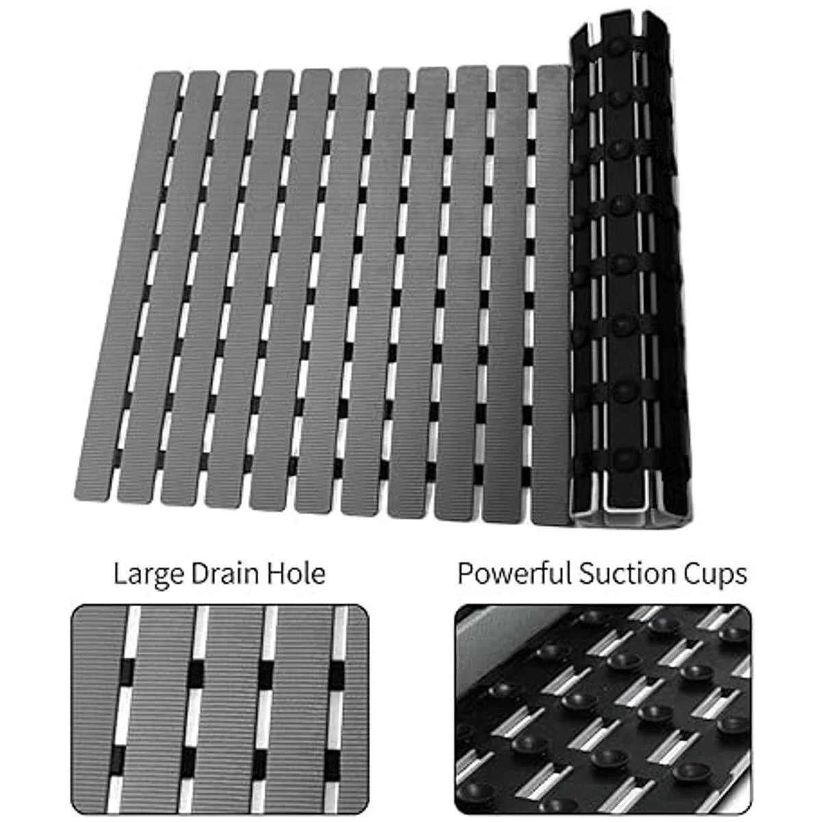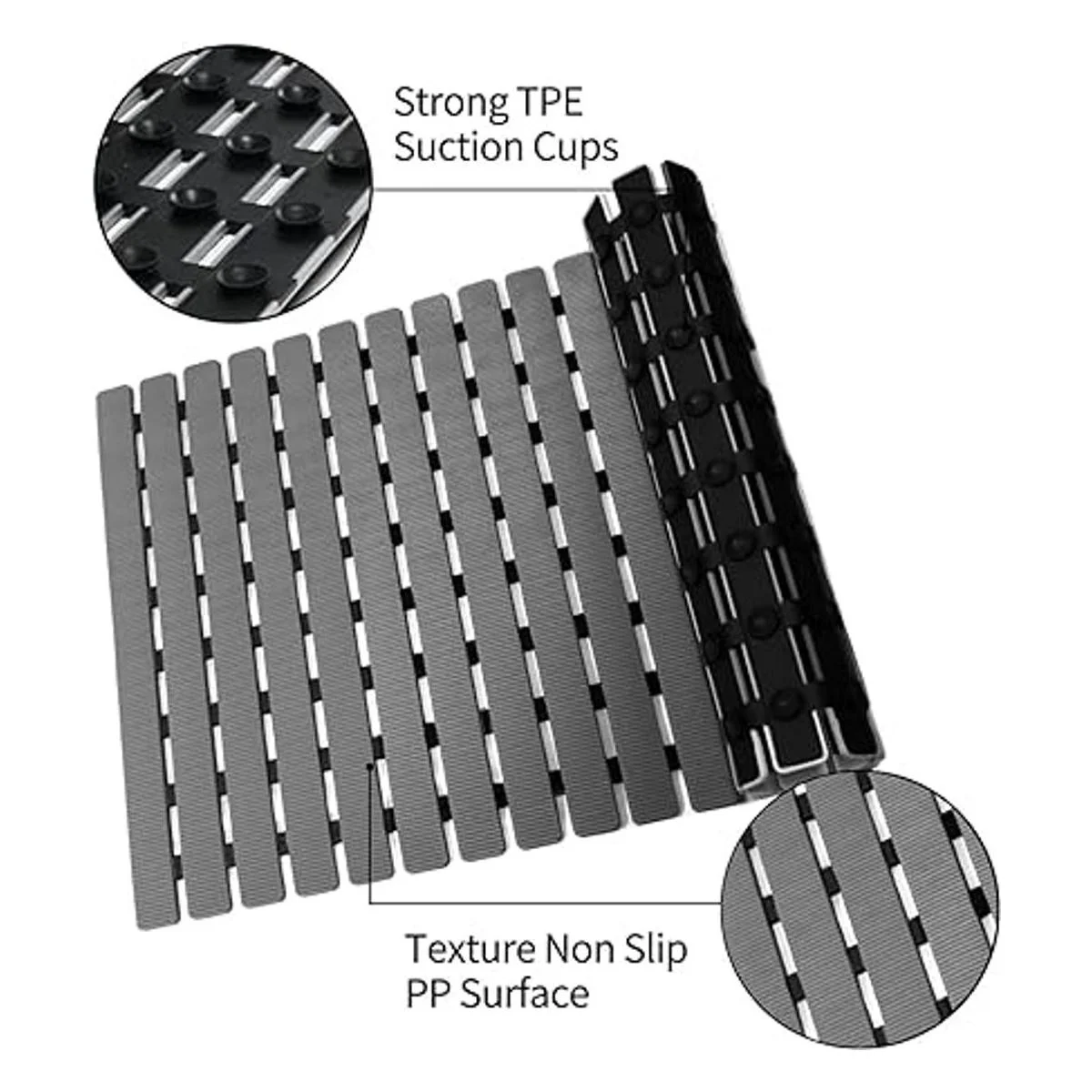 Ventosas: nuestra alfombrilla de ducha de baño cuenta con cientos de ventosas fuertes que ayudan a mantenerse en su lugar en superficies lisas y limpias. Nuestro tapete antideslizante para ducha de baño es una gran opción para el hogar, gimnasio, spa y mucho más.