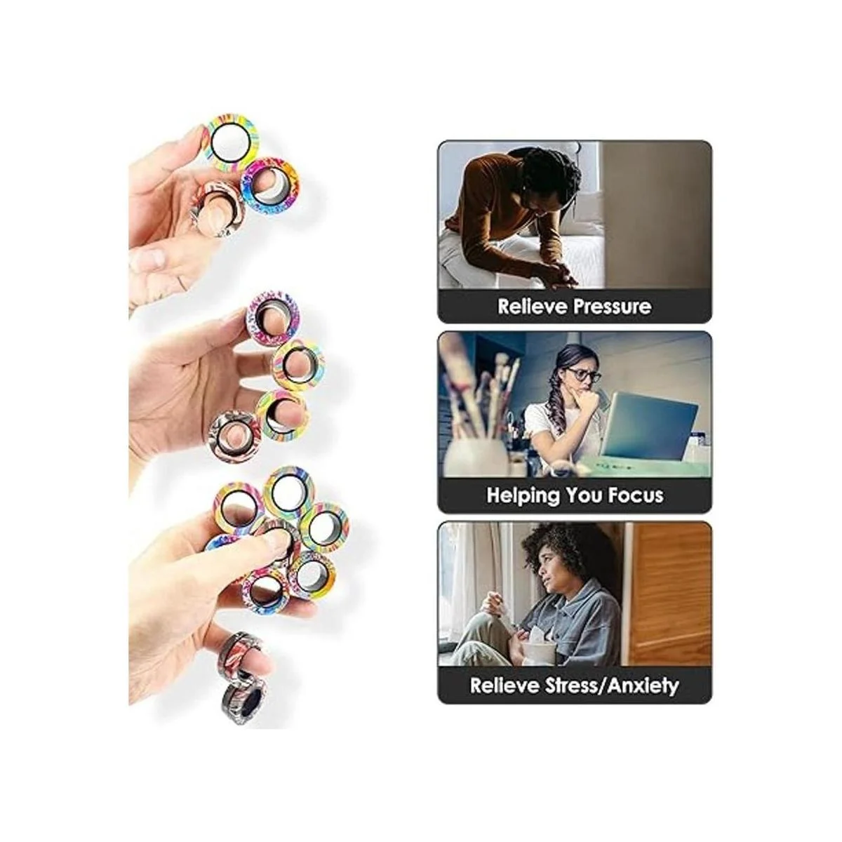 Accesorio multifuncional para ansiedad como el mejor regalo El anillo magnético de juguete es la mejor opción para un regalo premium. Adecuado tanto para niños como para adultos, sirven como un excelente accesorio para mejorar cualquier ambiente, lo que permite que tu hijo sea la nueva estrella del grupo. Como regalo de juguete de tamaño de bolsillo, puedes ponerlo en tu bolsillo y llevarlo fácilmente, para mostrar este juguete magnético en cualquier momento y en cualquier lugar.