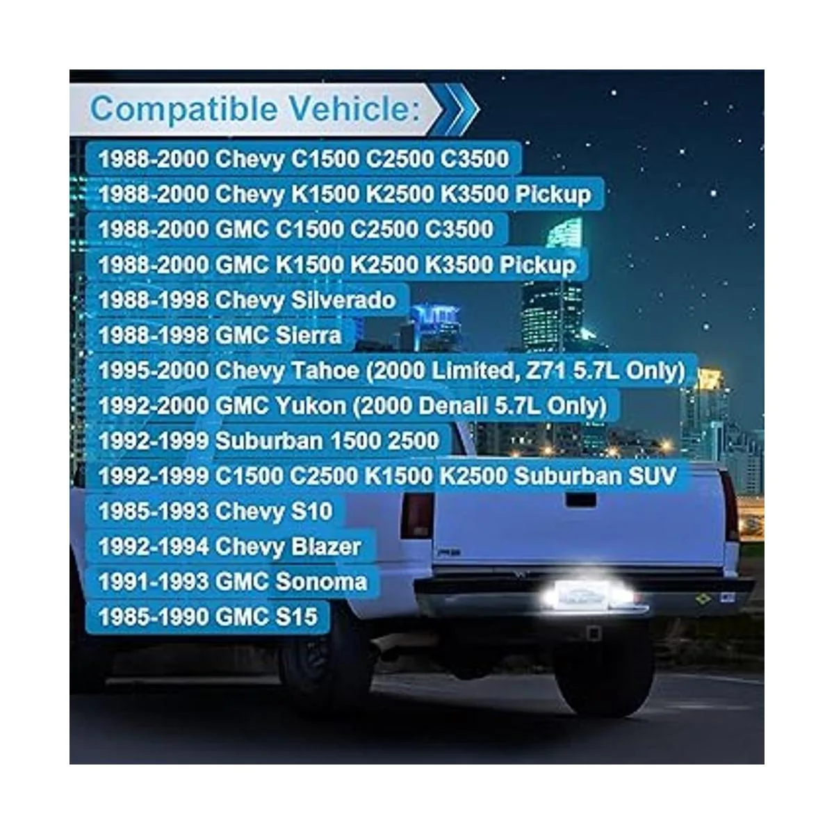 MbuyDIY Montaje de lámpara LED para placa de matrícula compatible con Chevy C1500 K1500 Silverado Sierra Pickup Tahoe Yukon Blazer S10 Sonoma S15 carcasa negra 6000 K blanco, paquete de 2