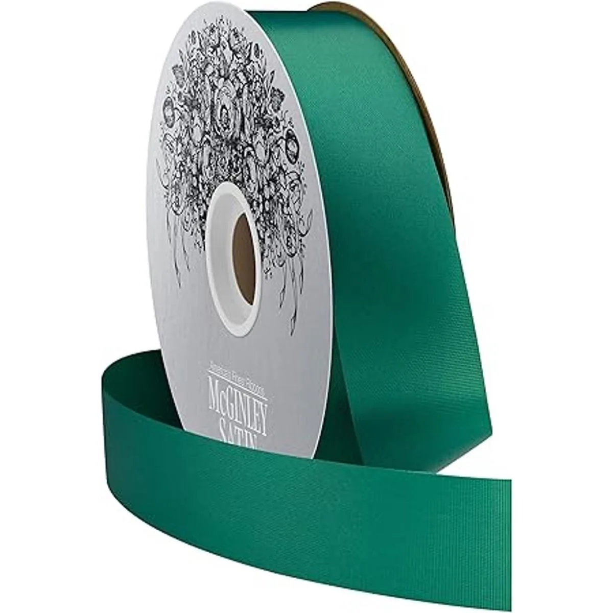 McGinley Mills Cinta de satén de acetato de 1.3 pulgadas de ancho, color verde festivo, carrete de 100 yardas