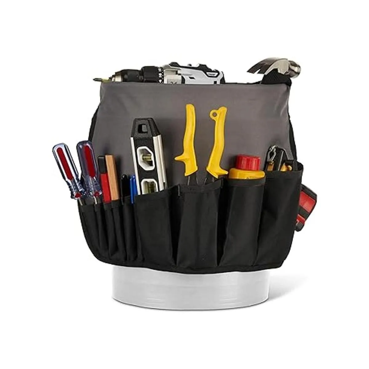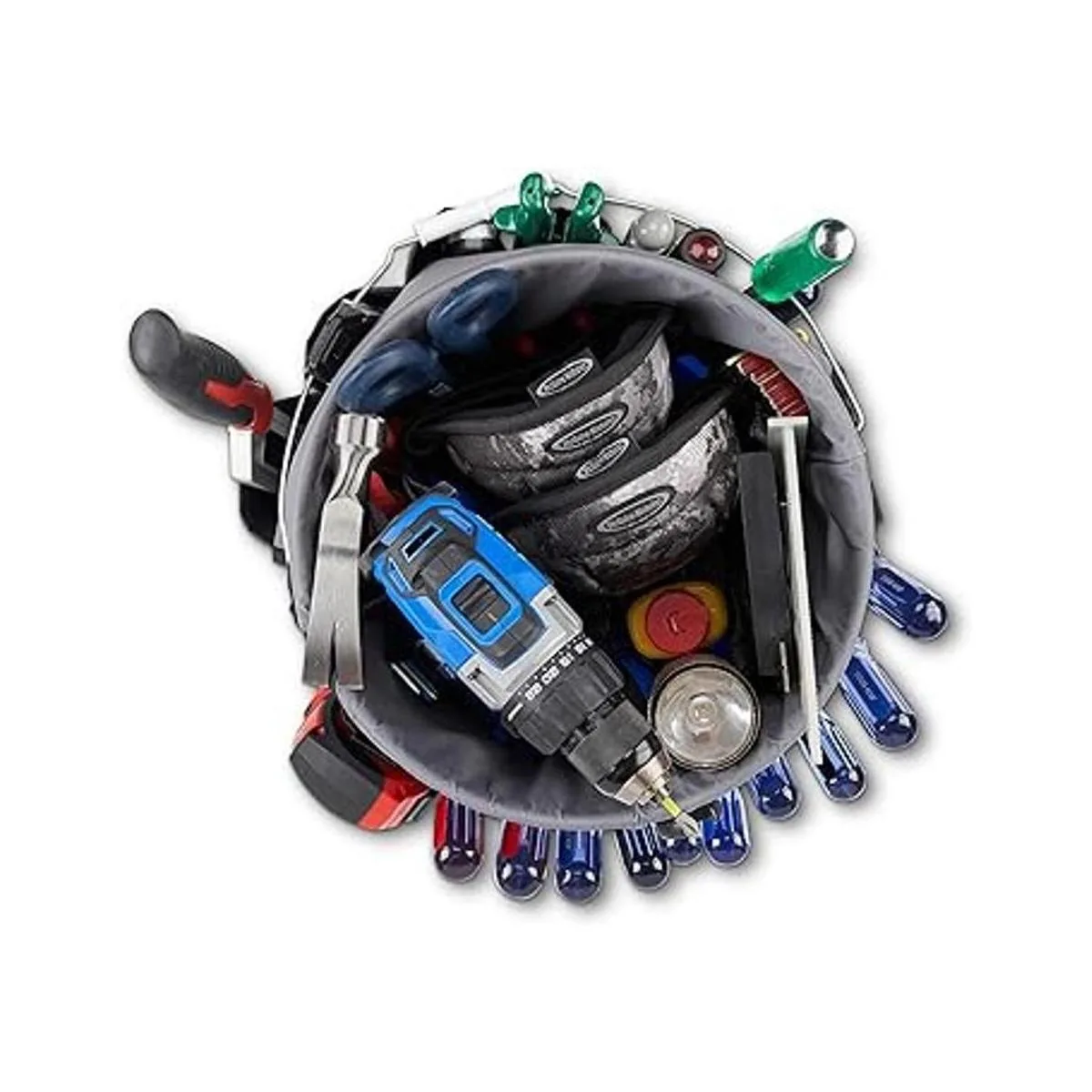 Mantente organizado en el lugar de trabajo: el organizador de cubo cuenta con 36 bolsillos y bucles de varios tamaños, bucles abiertos para herramientas de mango largo