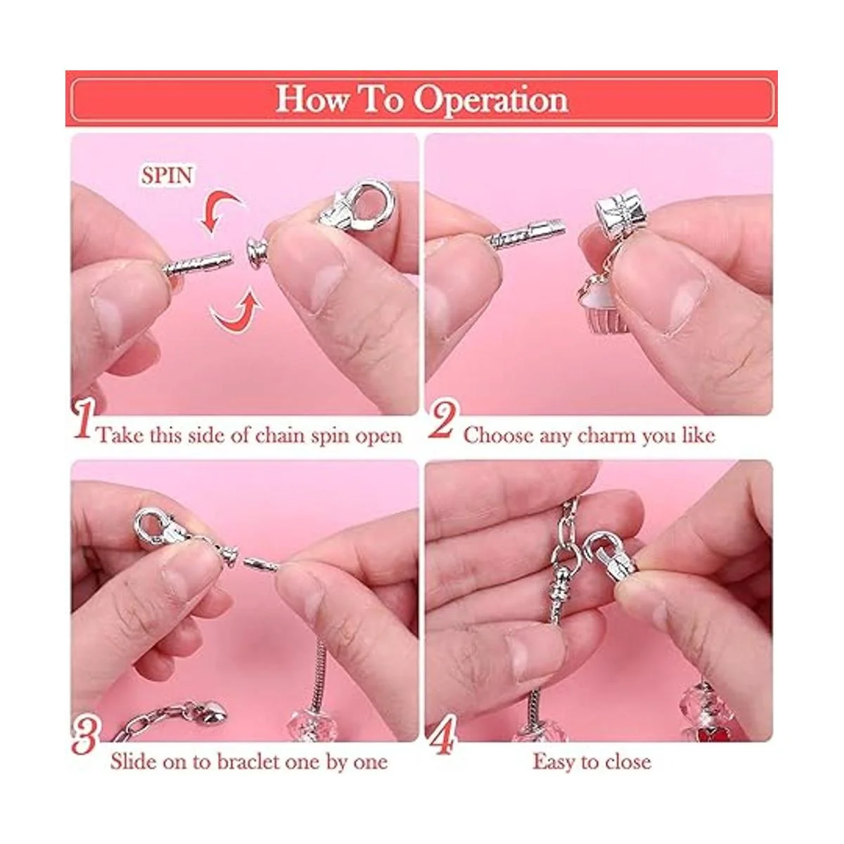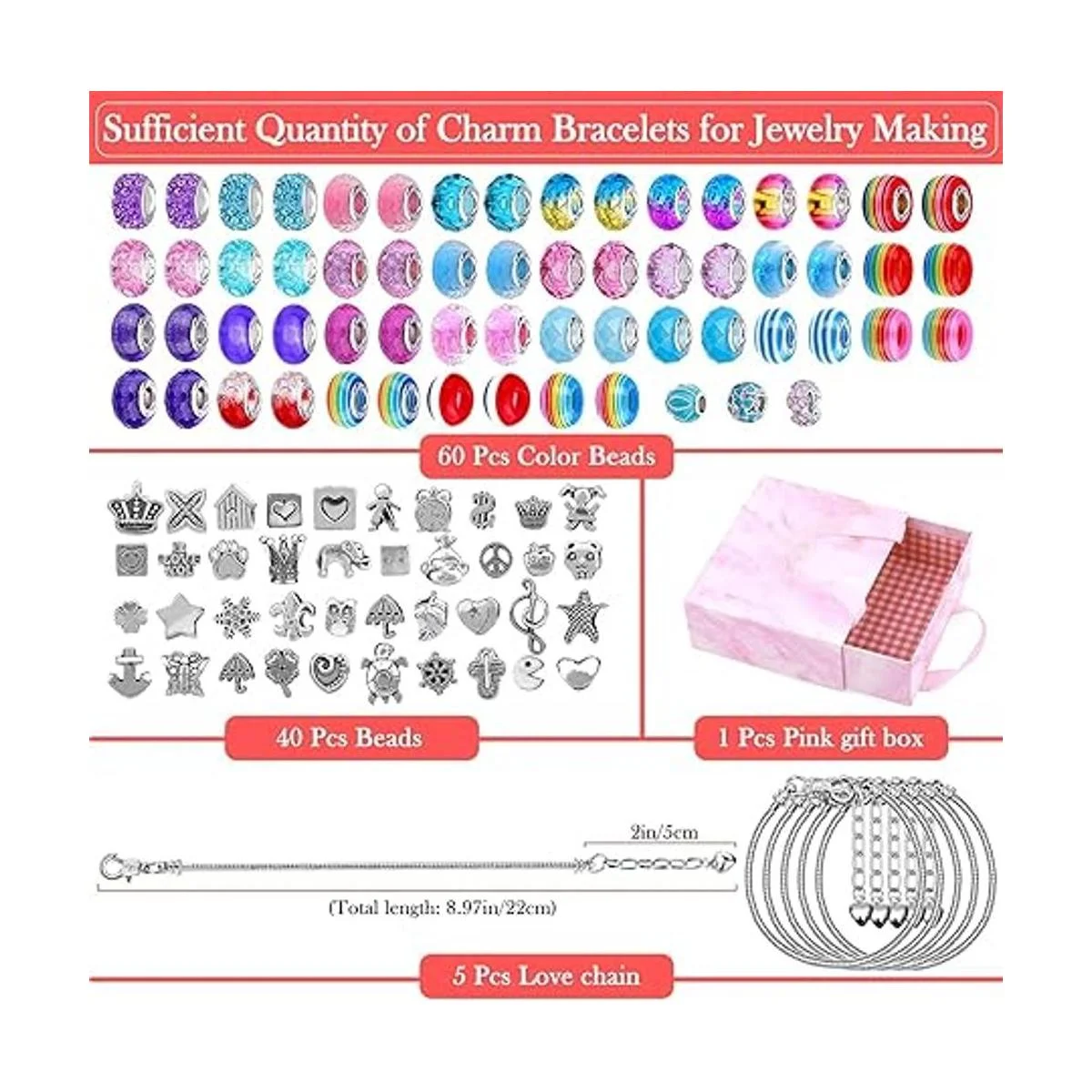 El paquete incluye: el kit de fabricación de pulseras de abalorios viene con 60 cuentas europeas de color de agujero grande, 40 dijes y 40 colgantes de cuentas, 5 pulseras de cadena de amor, 5 cordones de collar y 1 caja de regalo