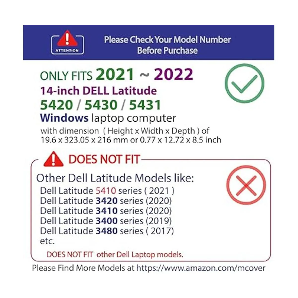 Diseñado para adaptarse perfectamente al portátil Dell Latitude 5420 5430 5431 de 14 pulgadas con dimensiones de 12,65 x 8,35 x 0,82 pulgadas 12.652 x 8.346 x 0.823 in