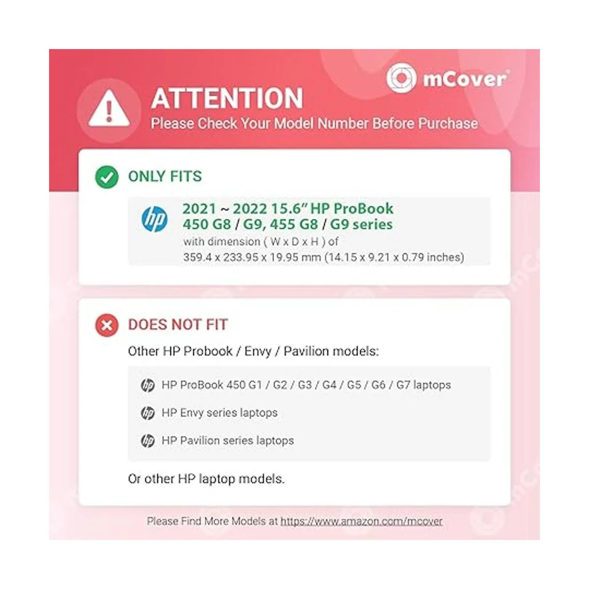 mCover Funda compatible con HP ProBook 450 G8 G9 y 455 G8 G9 y 455 G8 G9 Series 2021 2022 no compatible con otros modelos HP, color negro