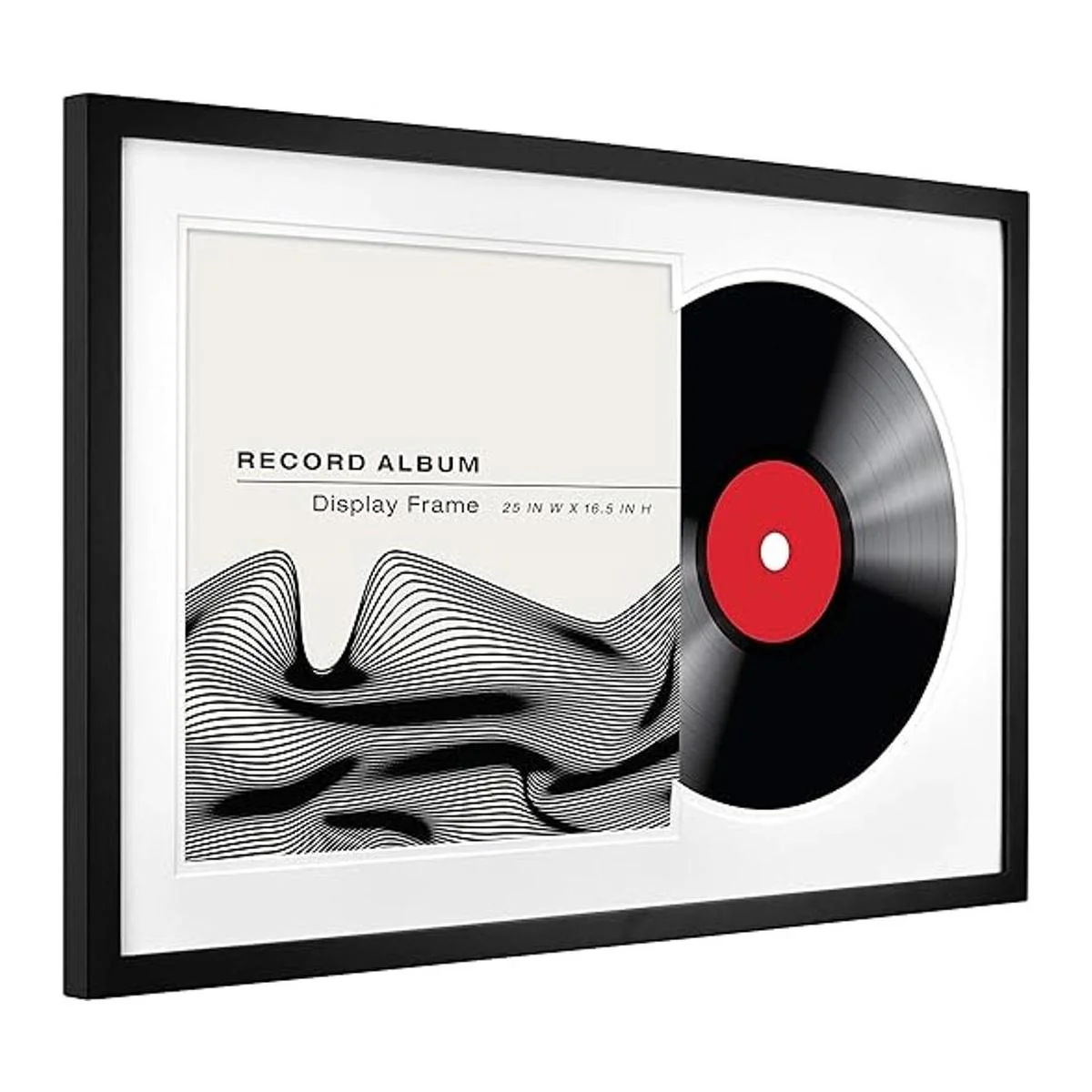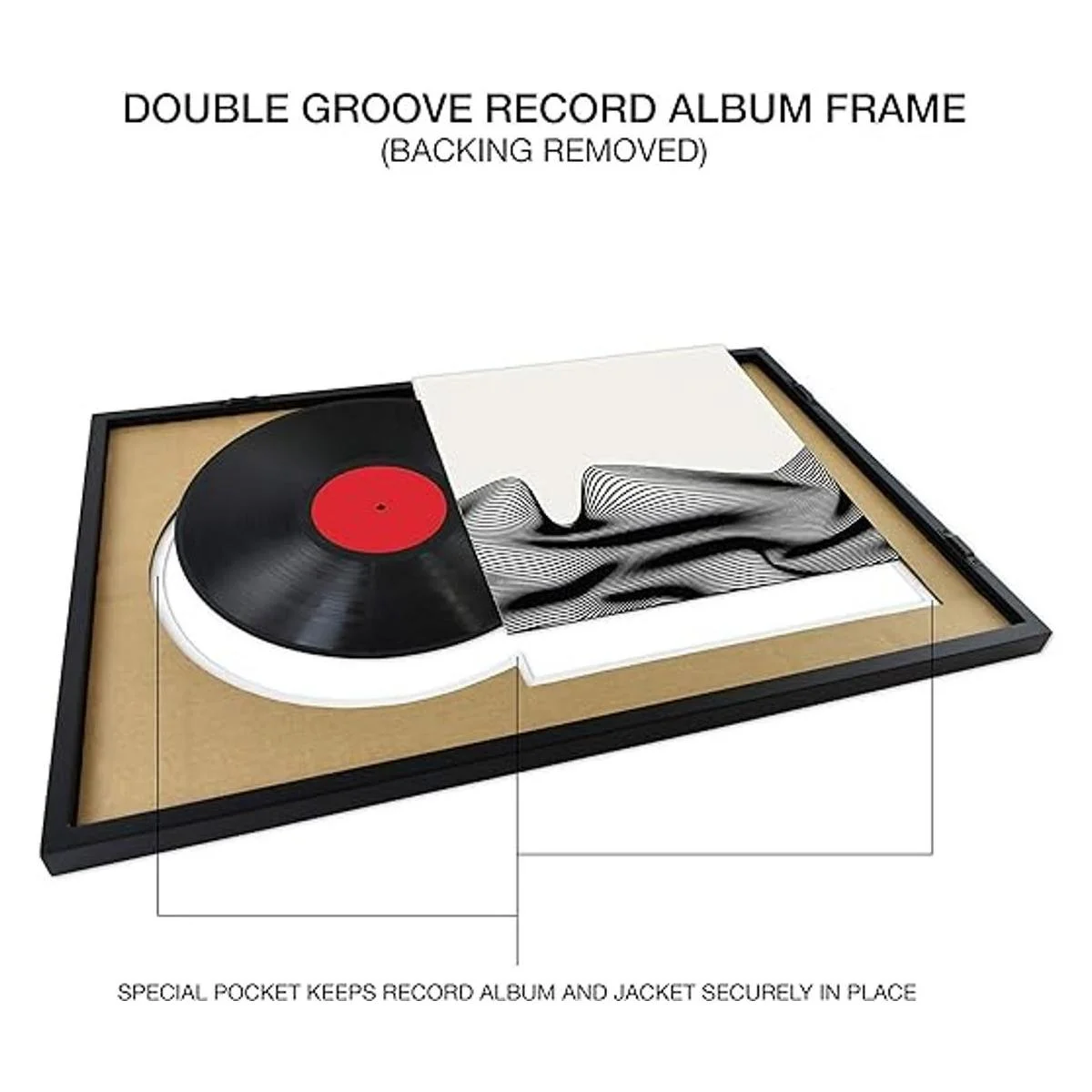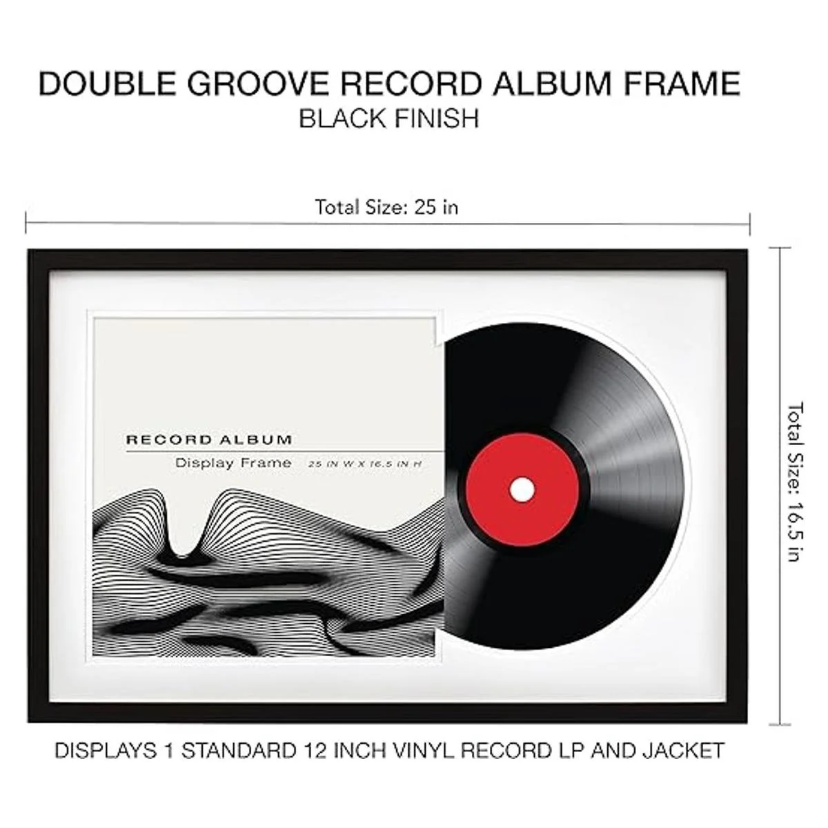 Dimensiones: este marco mide 25 x 16.5 pulgadas y está diseñado para mostrar una cubierta estándar o doble de álbum y un álbum