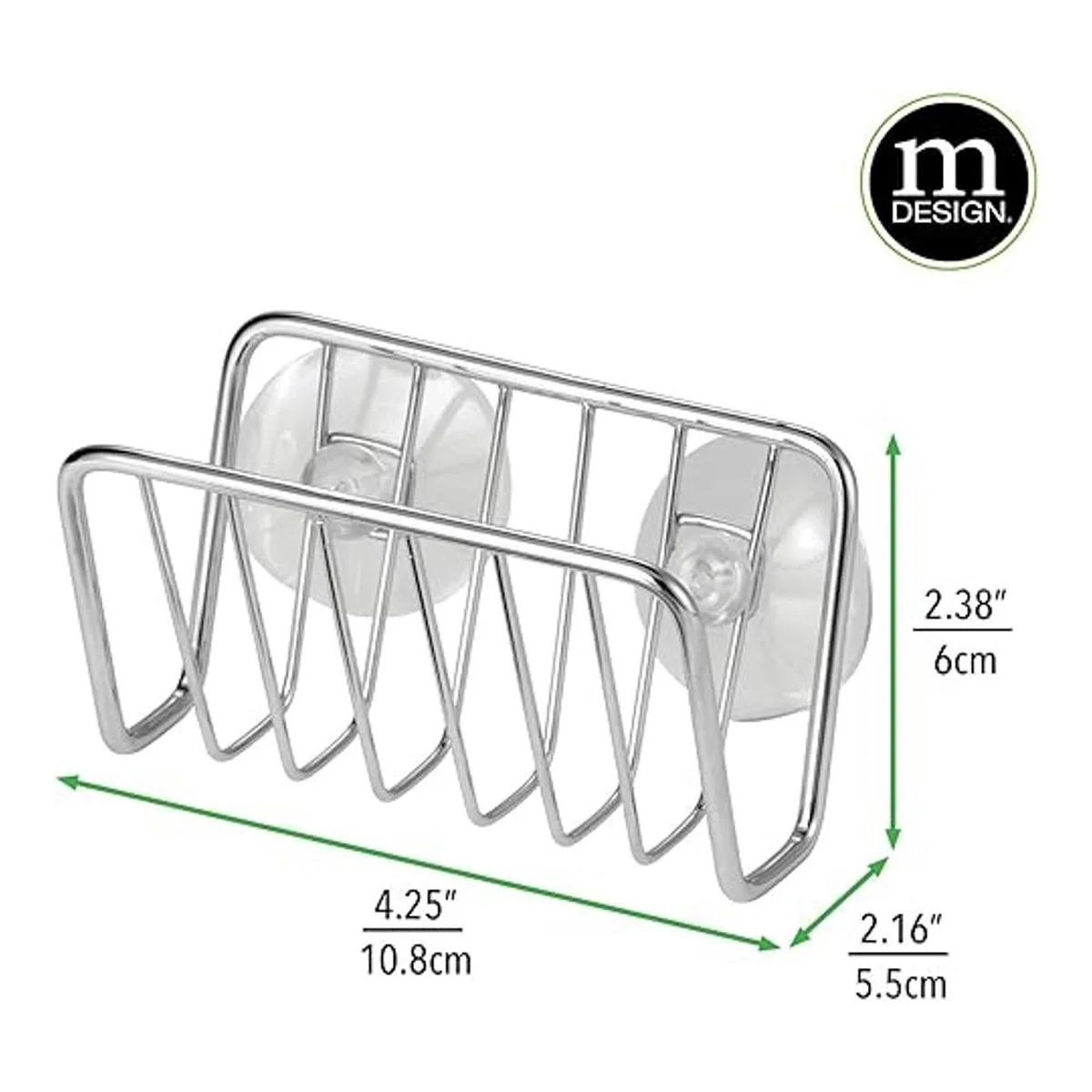 mDesign Organizador de almacenamiento de fregadero de cocina de metal para granja, soporte pequeño para esponjas, jabones, exfoliantes, diseño de cesta de alambre abierto de secado rápido con ventosas fuertes, cromo