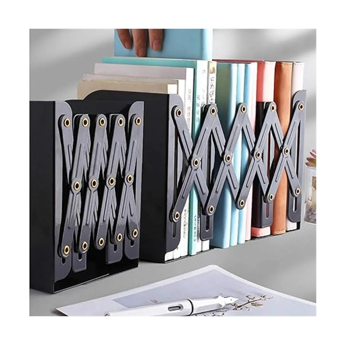 Sujetalibros ajustables y extensibles: este soporte ajustable es flexible y se puede redimensionar de acuerdo con el número de libros. Excelente longitud retráctil de 10 a 19.7 in para satisfacer varios requisitos.