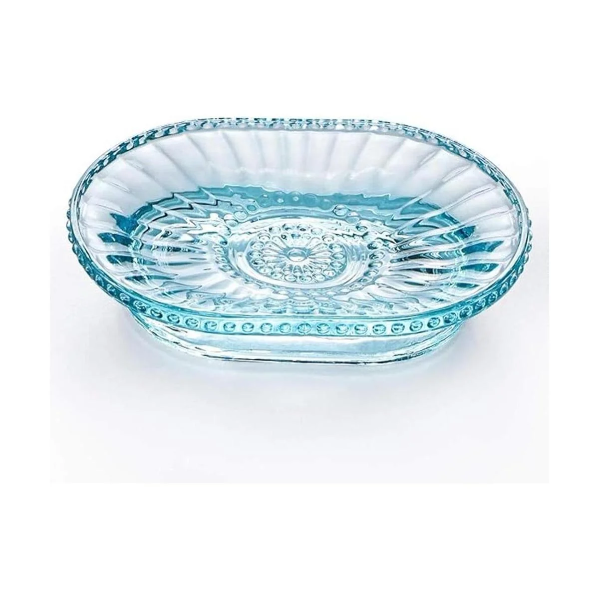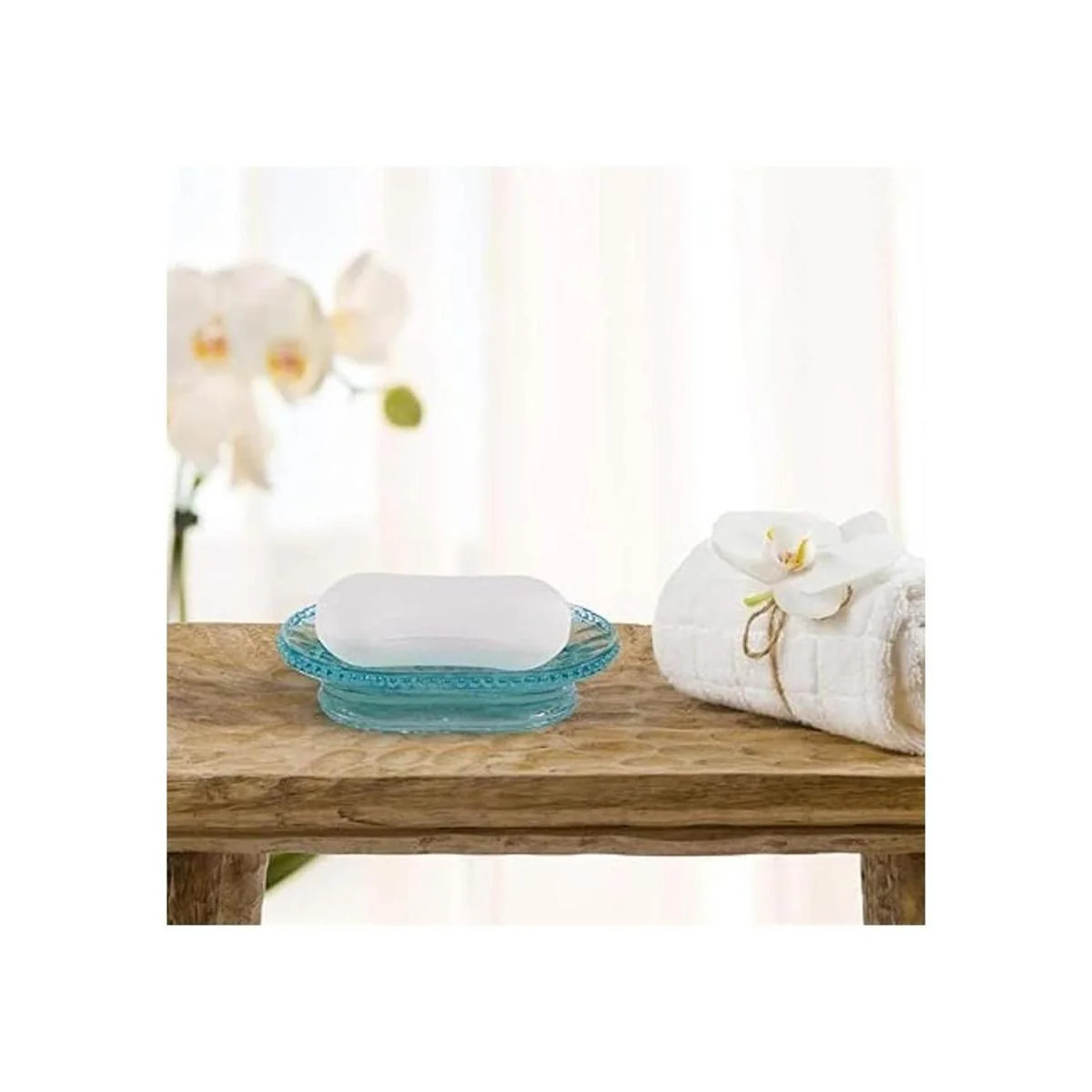 Diseño de relieve de inspiración vintage: esta jabonera de barra cuenta con vidrio de color azul con patrón en relieve, lo que le da un aspecto y sensación antiguos sin agujeros de drenaje en la parte inferior