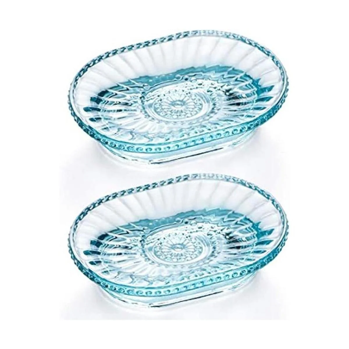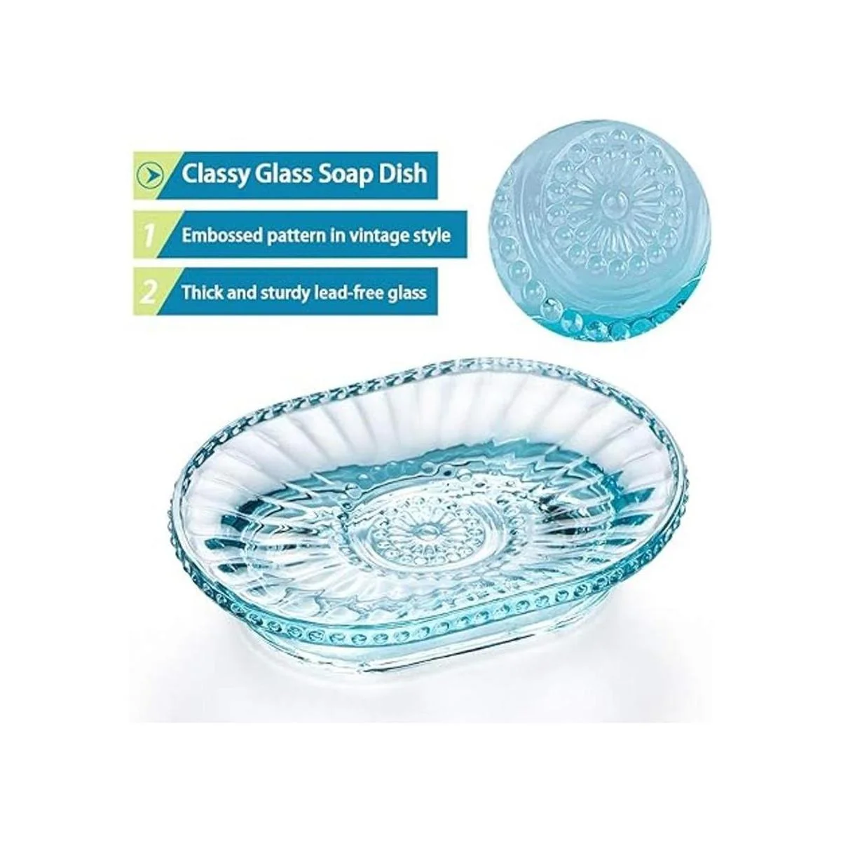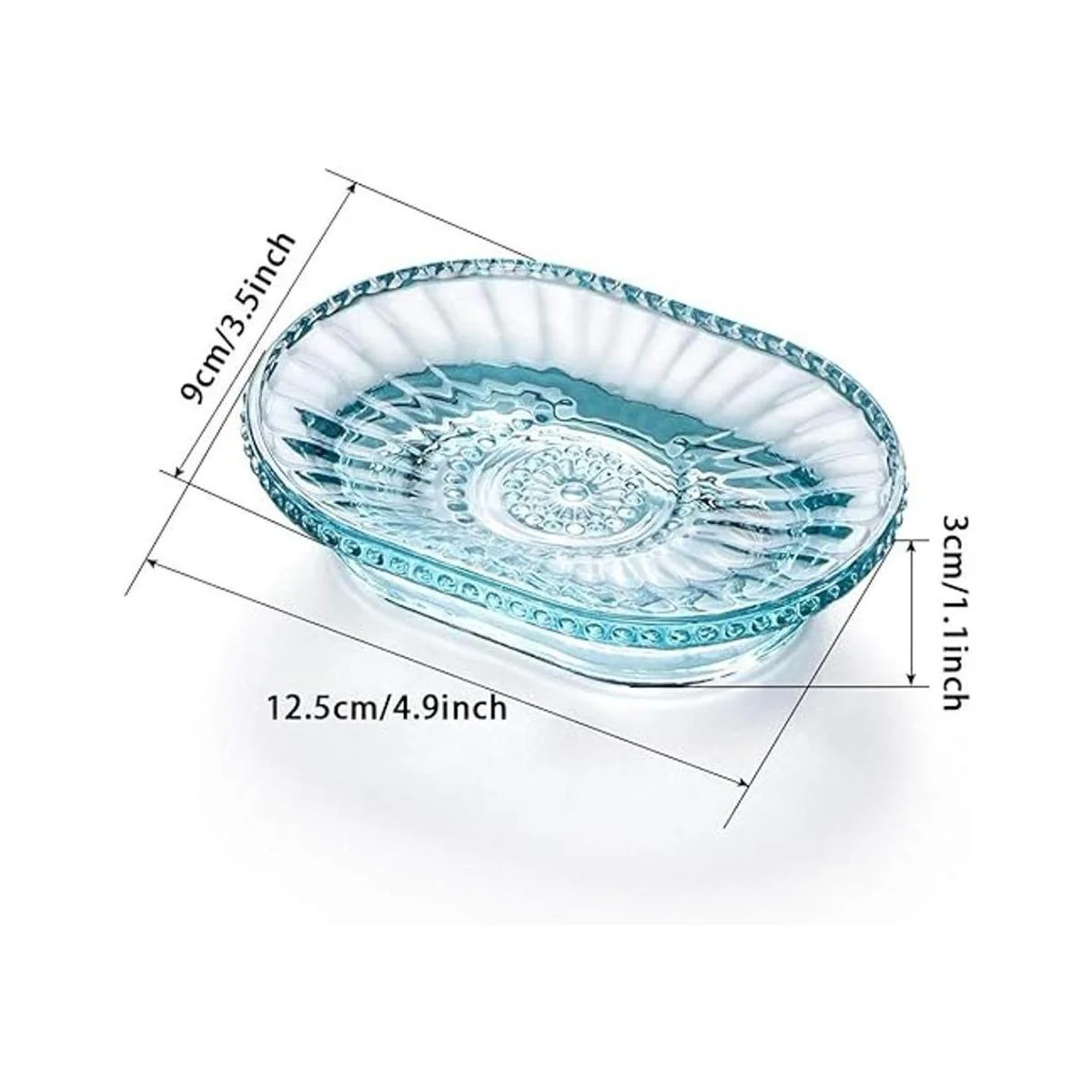 MDLUU Jabonera de cristal, soporte de jabón de barra en relieve, bandeja decorativa para jabón, jabonera de barra vintage para ducha, bañera, fregadero de baño, fregadero de cocina, paquete de 2 azul