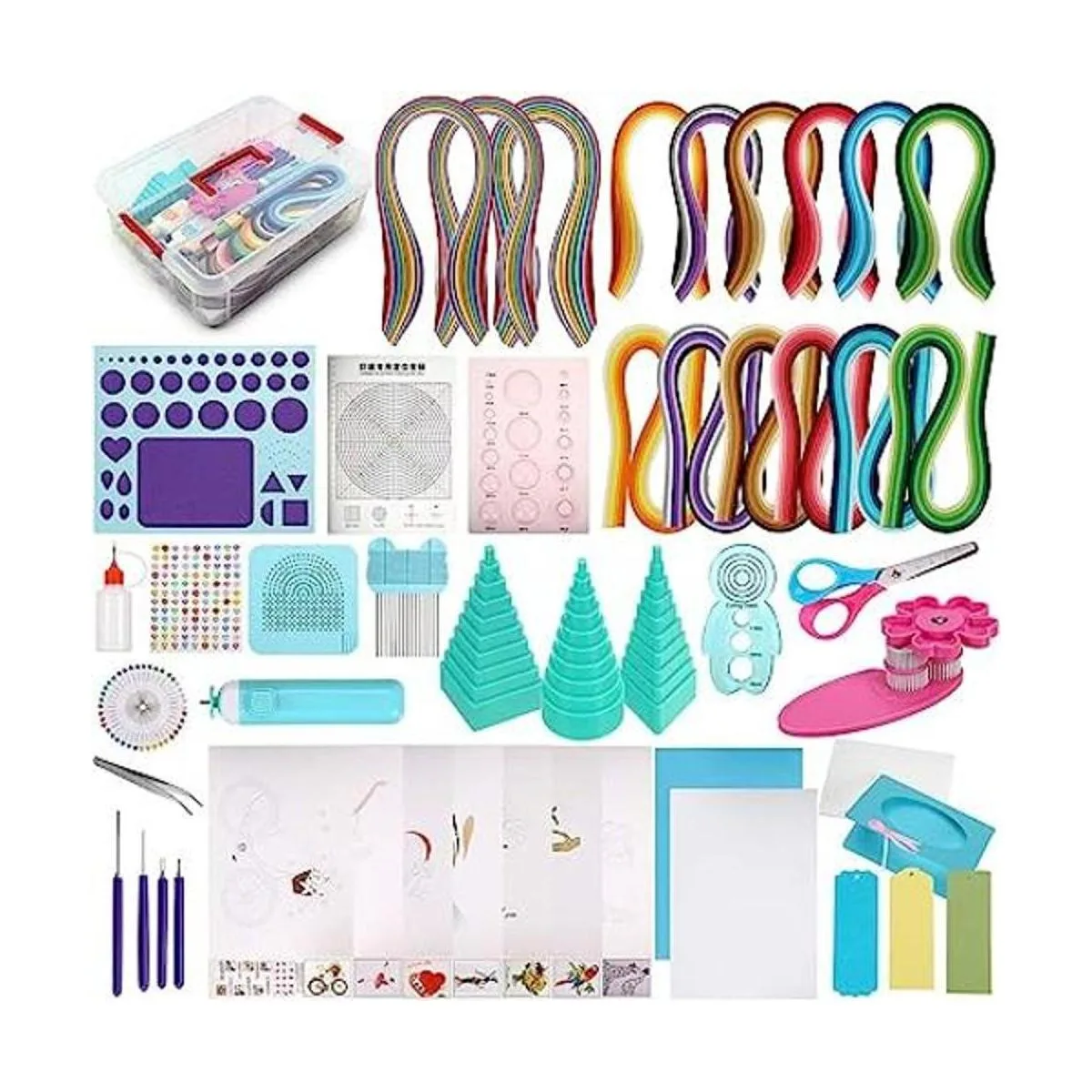 El paquete incluye: el kit de filigrana de papel con caja de almacenamiento incluye 1860 tiras, 22 herramientas, 8 piezas de papel manuscrito, 7 tarjetas de papel e instrucciones de herramientas idioma español no garantizado