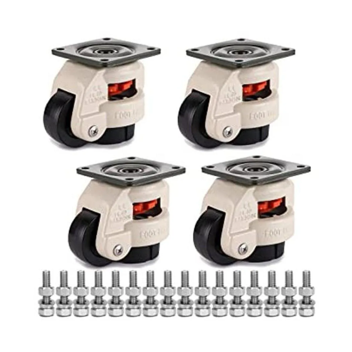 MDLUU Ruedas de nivelación con almohadilla de goma, FM60F para banco de trabajo retráctil, ruedas de pie de nivelación, capacidad de carga 551 librasPer, paquete de 4