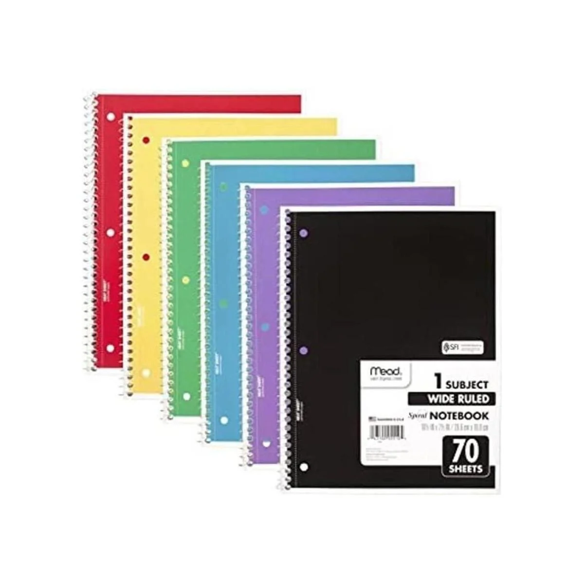 Mead Cuaderno de espiral, 1 materia, papel de rayas, 70 hojas, cuadernos de colores, papel rayado, suministros escolares para el hogar para estudiantes universitarios y K12, 10 12 x 7 12 pulgadas, colores surtidos, 6 unidades 73063