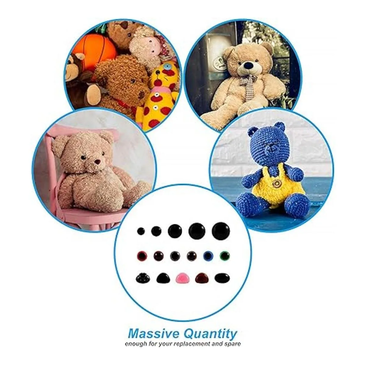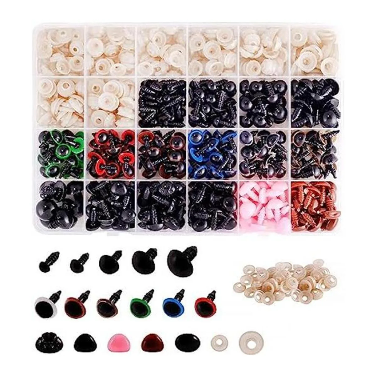Juego muy valioso: incluye 186 ojos de seguridad, 110 narices de seguridad y más de 300 arandelas en una variedad de tamaños, y una caja de almacenamiento de plástico con 24 compartimentos.