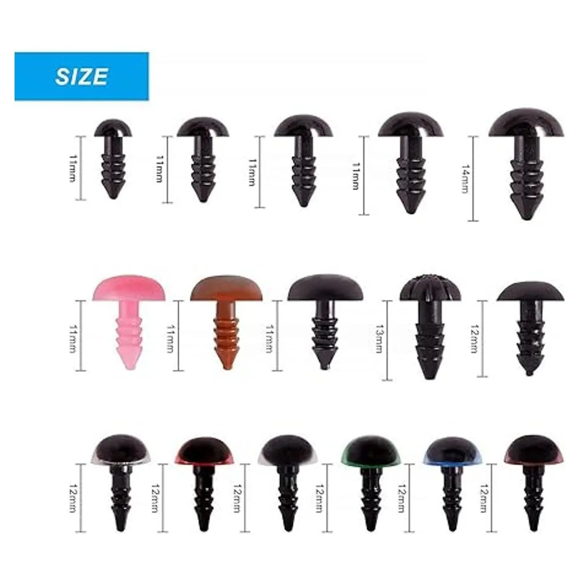 Material de alta calidad: los ojos y la nariz de seguridad están hechos con plástico ABS de alta calidad y buen pulido y superficie lisa, sólida y duradera y variedad de tamaños y colores. Cumple con tus diferentes requisitos de tamaño y colores.