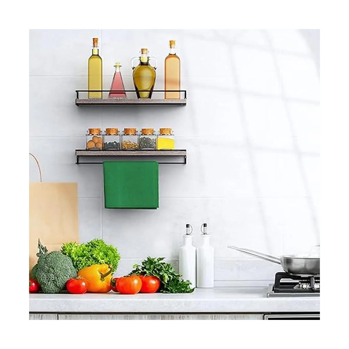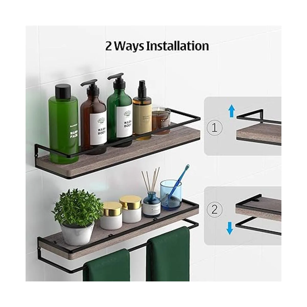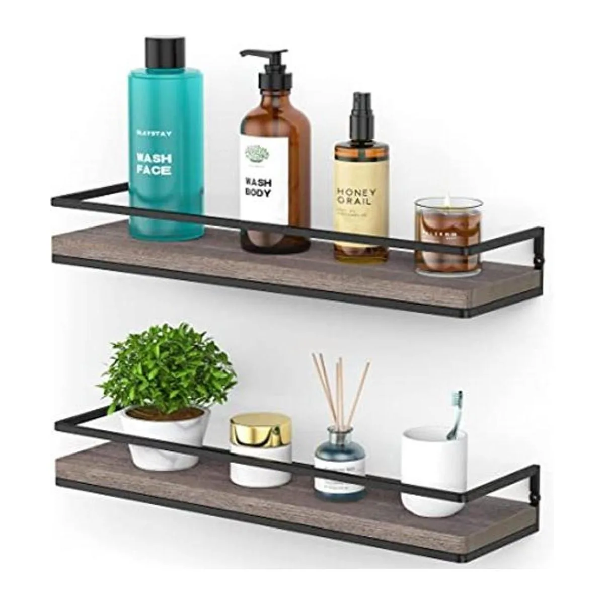 Meangood Juego de 2 estantes flotantes para montaje en pared, estantes de almacenamiento de pared de madera rústica para dormitorio, sala de estar, baño, cocina nogal