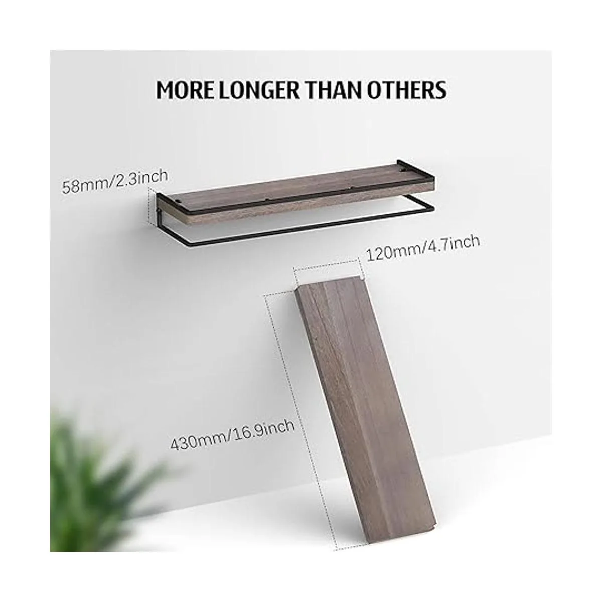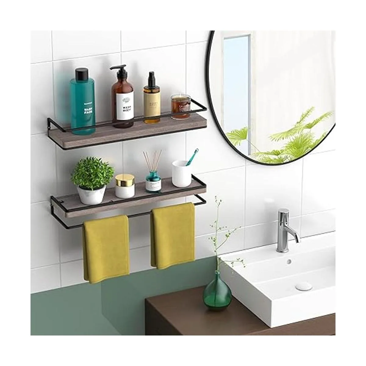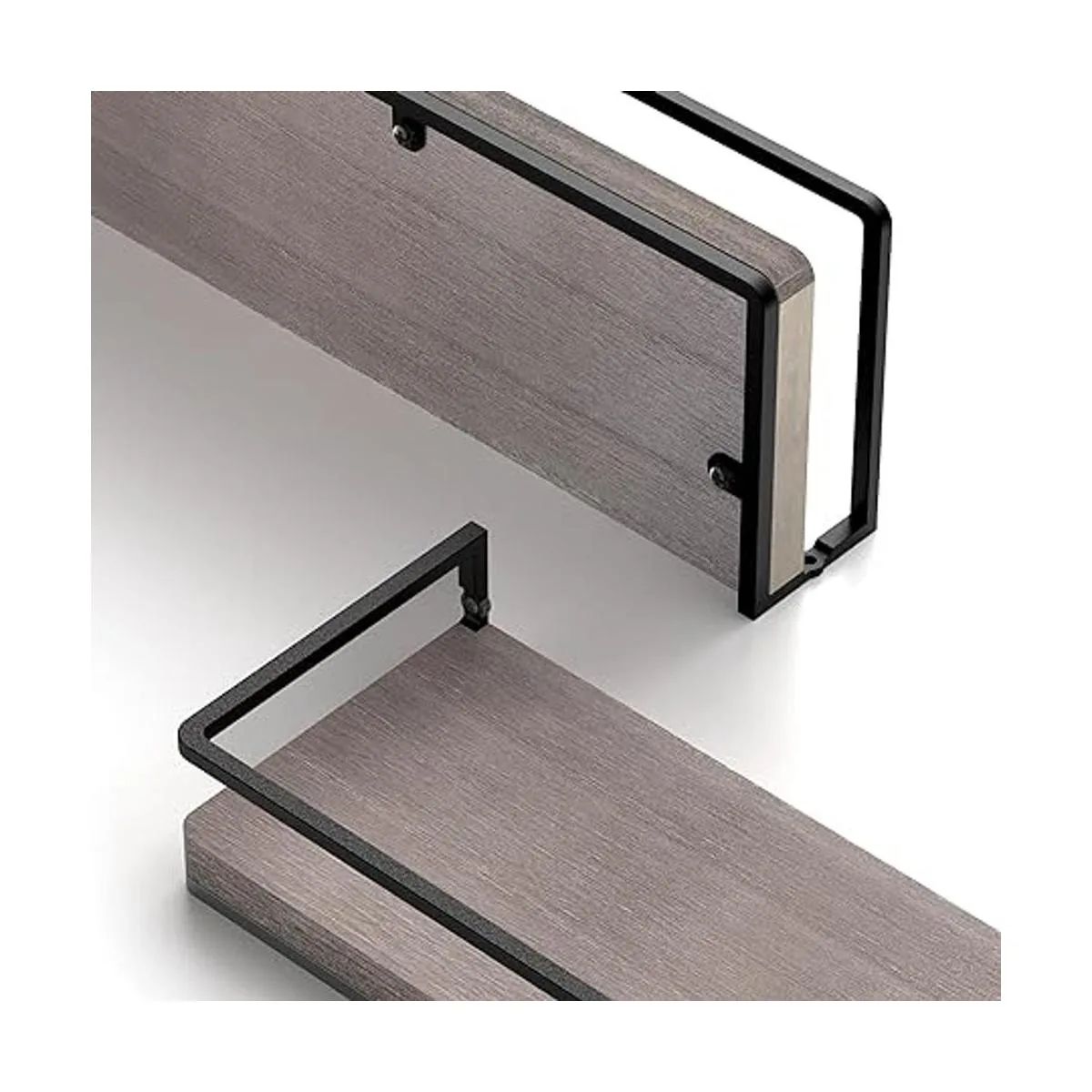 Meangood Juego de 2 estantes flotantes para montaje en pared, estantes de almacenamiento de pared de madera rústica para dormitorio, sala de estar, baño, cocina nogal