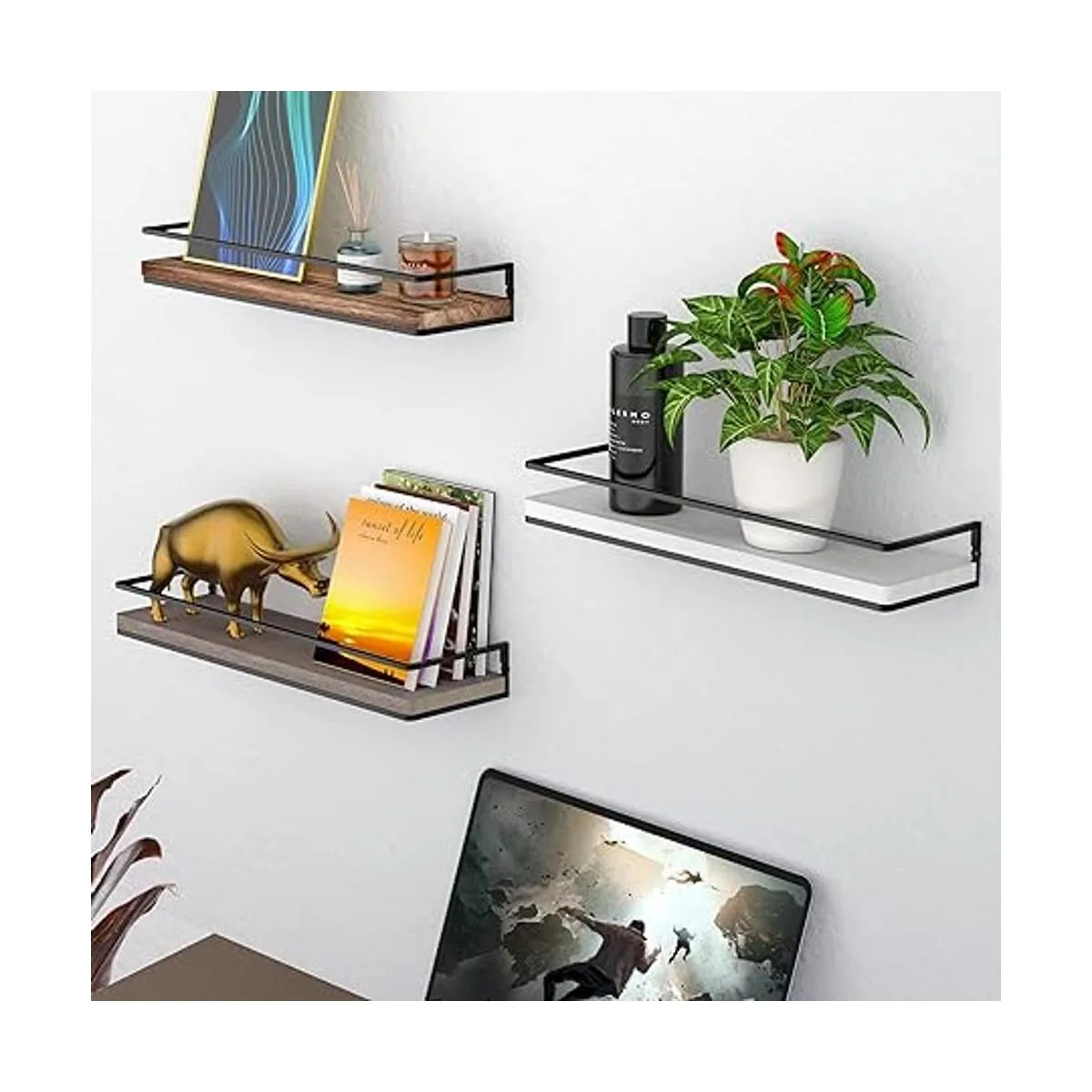 Estantes de madera rústica: hechos de madera maciza real y metal, el aspecto industrial es simple y moderno. Utiliza el espacio vertical en la pared, no solo aumenta el espacio de almacenamiento, sino que también añade decoración y belleza. Cuando estos estantes hacen que la imagen desordenada esté limpia y ordenada, te hará feliz.
