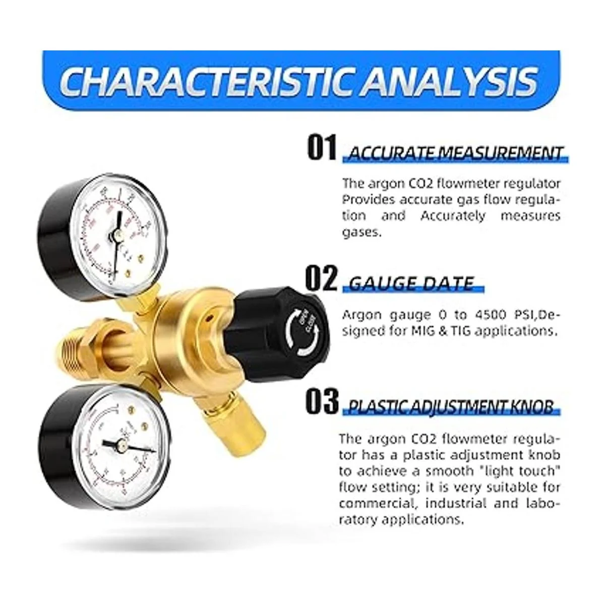 Medición precisa: el regulador de flujo de CO2 de argón proporciona una regulación precisa del flujo de gas y mide con precisión los gases.