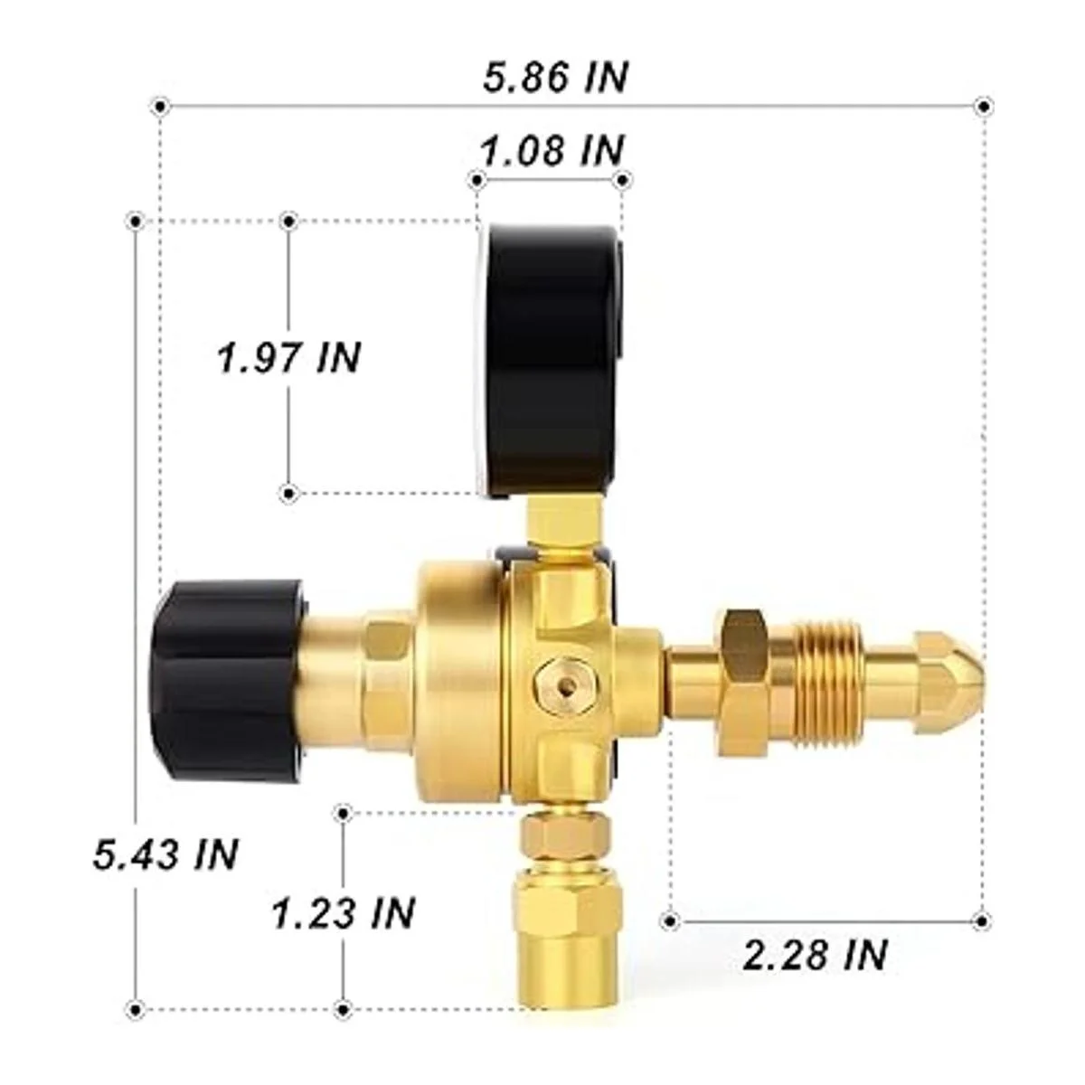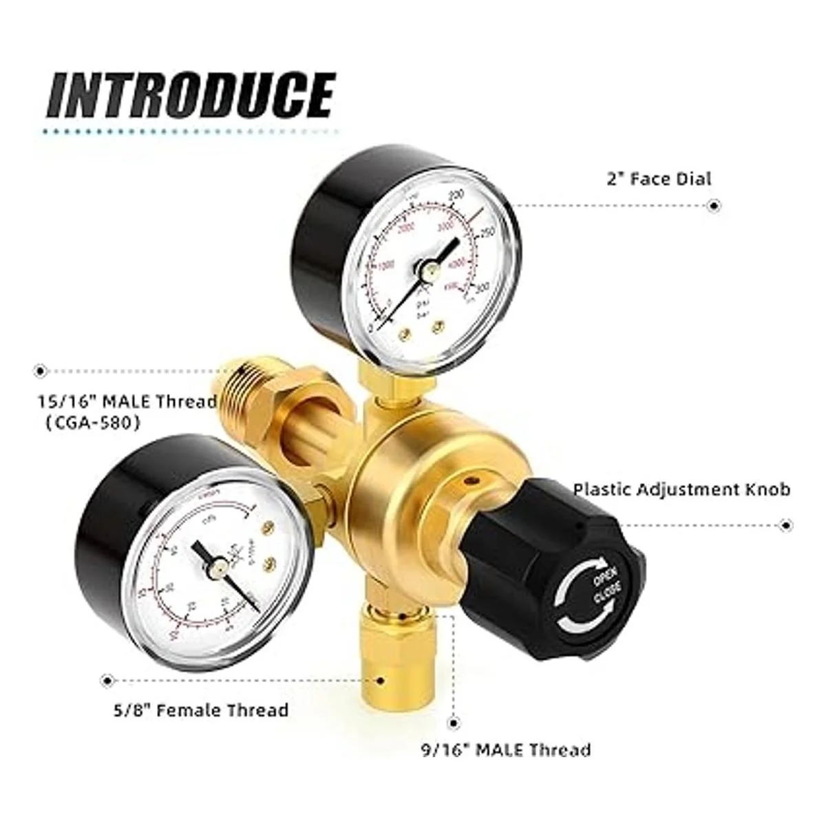 Pomo de ajuste de plástico: el regulador de caudal de CO2 de Argon tiene una perilla de ajuste de plástico que permite ajustes de flujo de tacto ligero suaves y tiene un diseño de alivio de seguridad interno.
