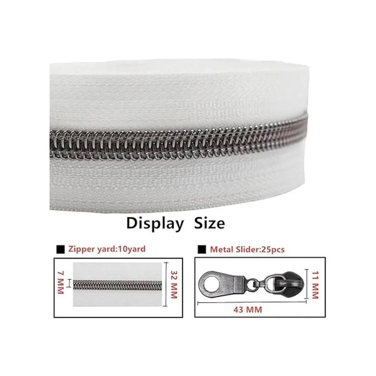 Cantidad: cremalleras continuas de 10 yardas y 25 tiradores a juego