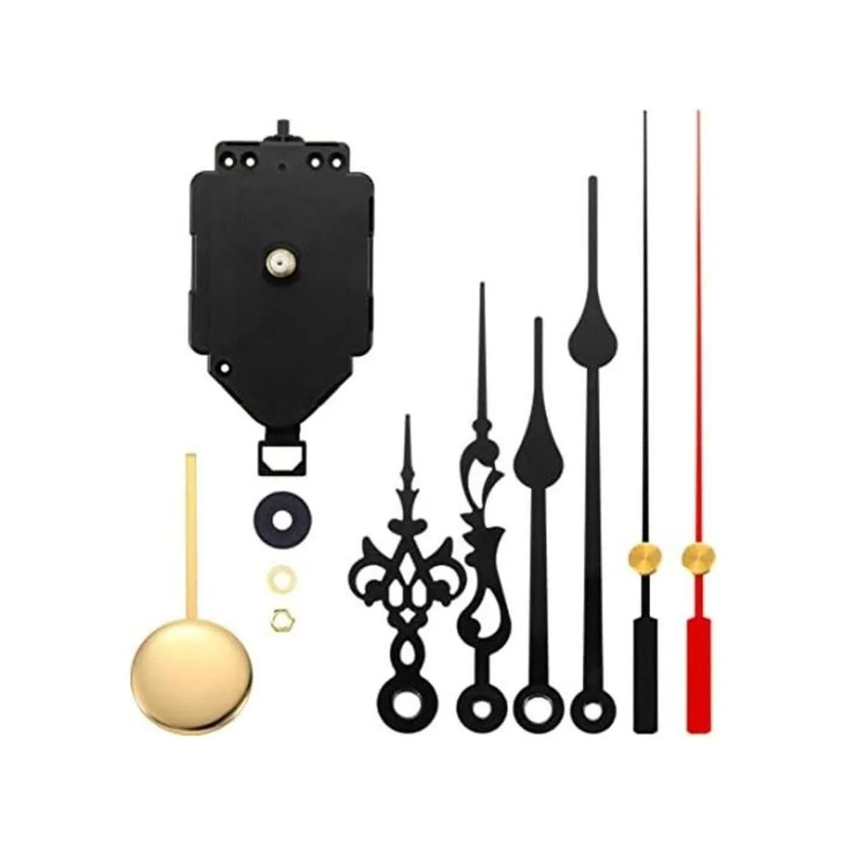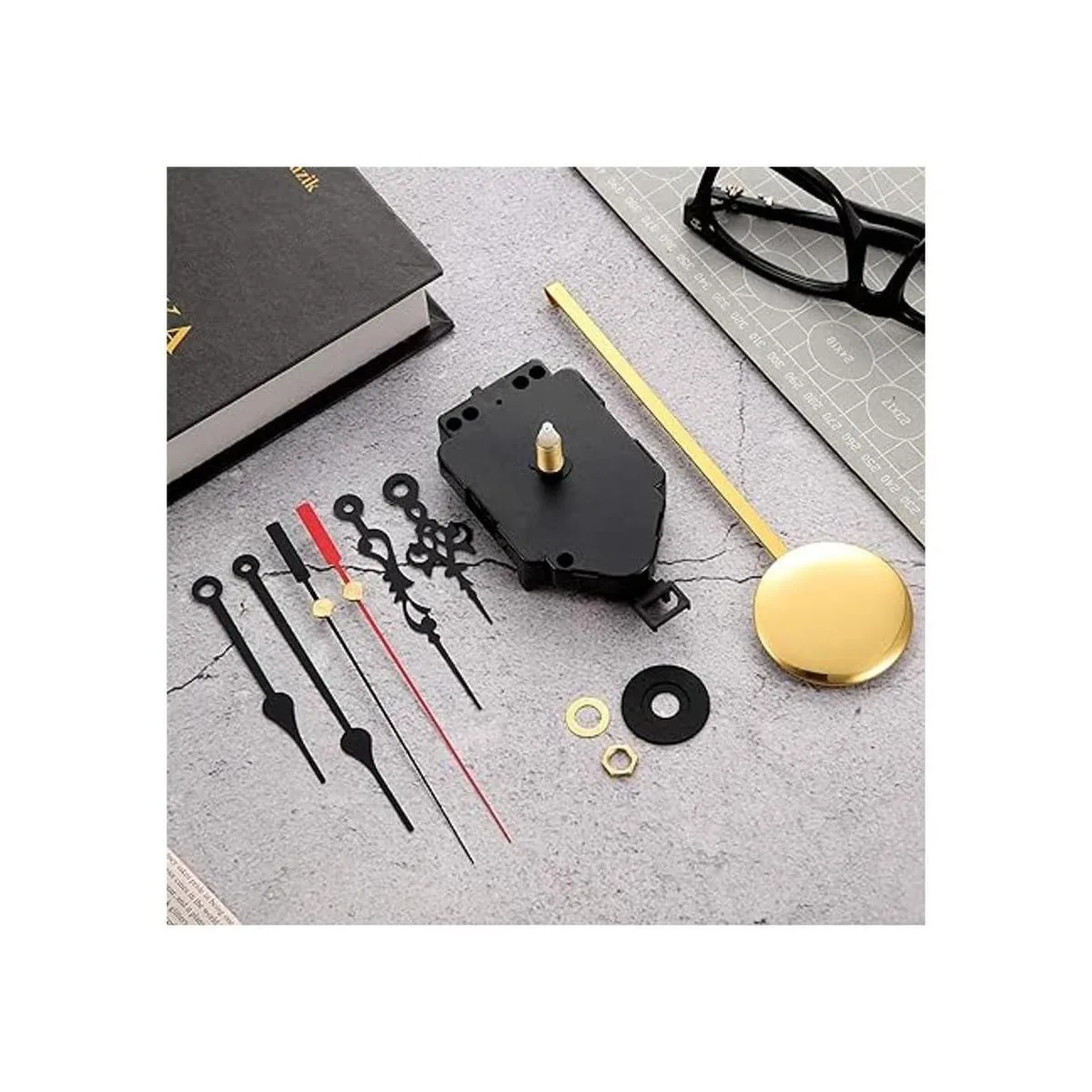 Mecanismo de movimiento de reloj de péndulo de cuarzo, repuesto de piezas de reparación de bricolaje con 2 pares de manecillas y péndulo para reparación de reloj de bricolaje
