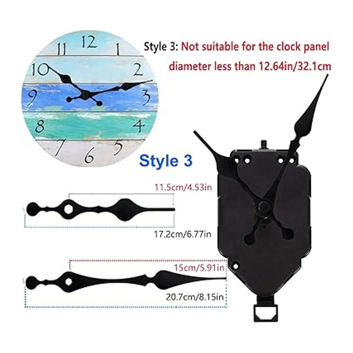 Buena elección para ti mismo o reparación: aplicable a punto de cruz, bordado tridimensional, reloj de manualidades, reloj de dibujo sin marco, y especialmente adecuado para piezas de movimiento de repuesto de reloj de pared de cuarzo, etc. El diámetro del panel del reloj debe ser más largo de 12.638 in. Las manecillas del reloj deben ser inferiores a 14.094 in.