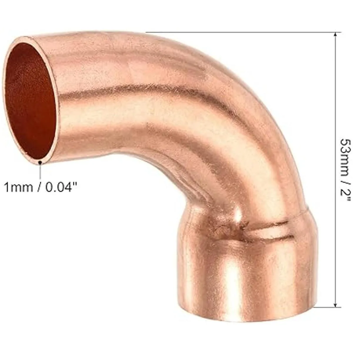Contenido del paquete: 1 accesorio de cobre de 90 grados; diámetro interior pequeño: 0.787 in; diámetro interior grande: 0.906 in; tamaño largo x ancho: 2.087 x 2.087 in. Grosor: 0.039 in