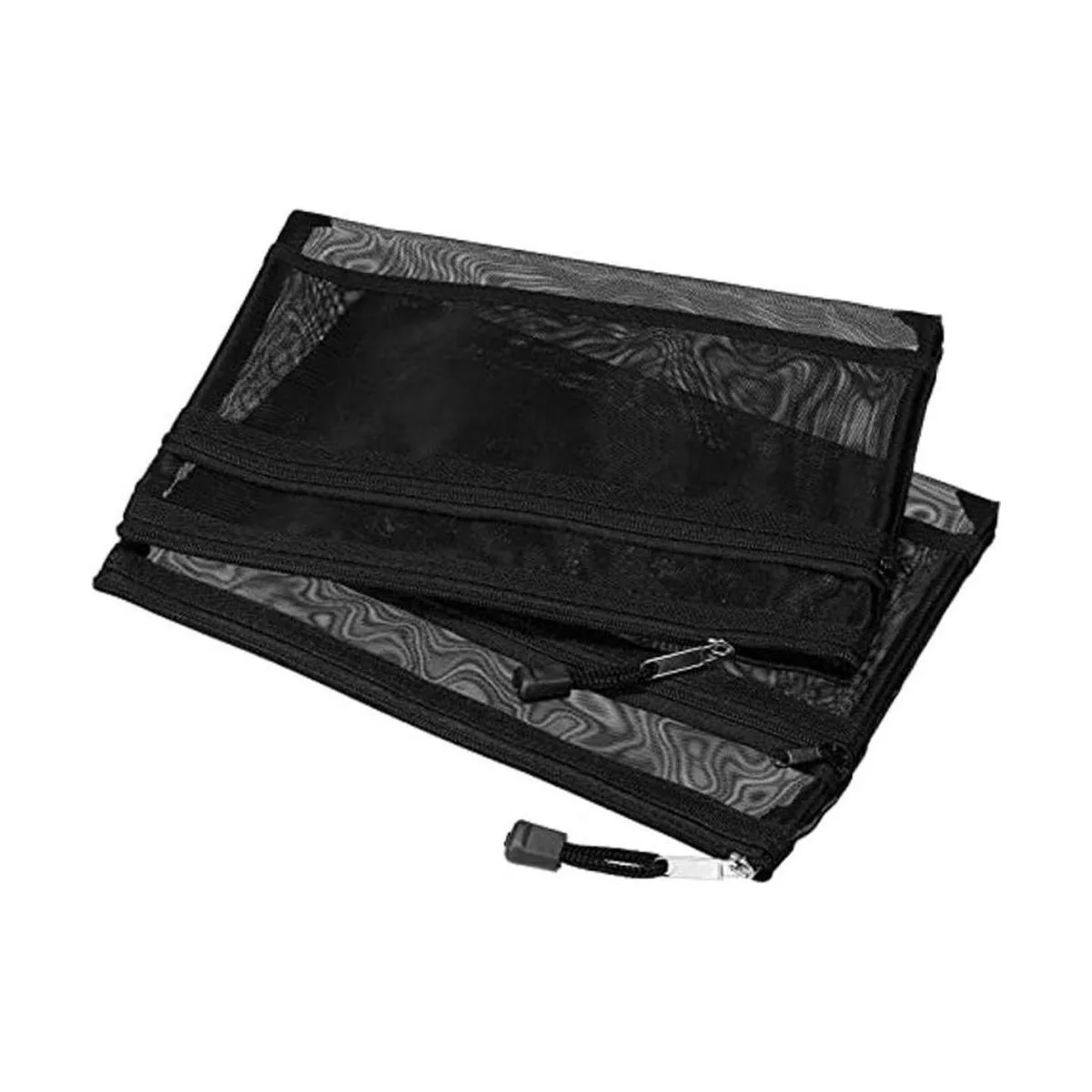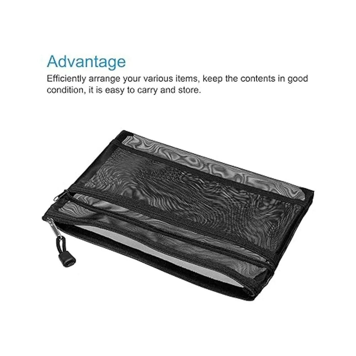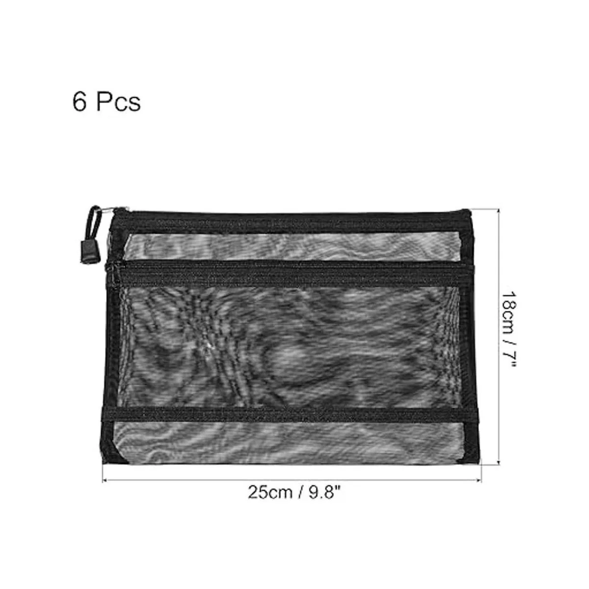 MECCANIXITY Bolsas de malla con cremallera, tamaño A5, de nailon de doble capa, con cremallera, bolsillos organizadores para viajes, accesorios de oficina, color negro, paquete de 6