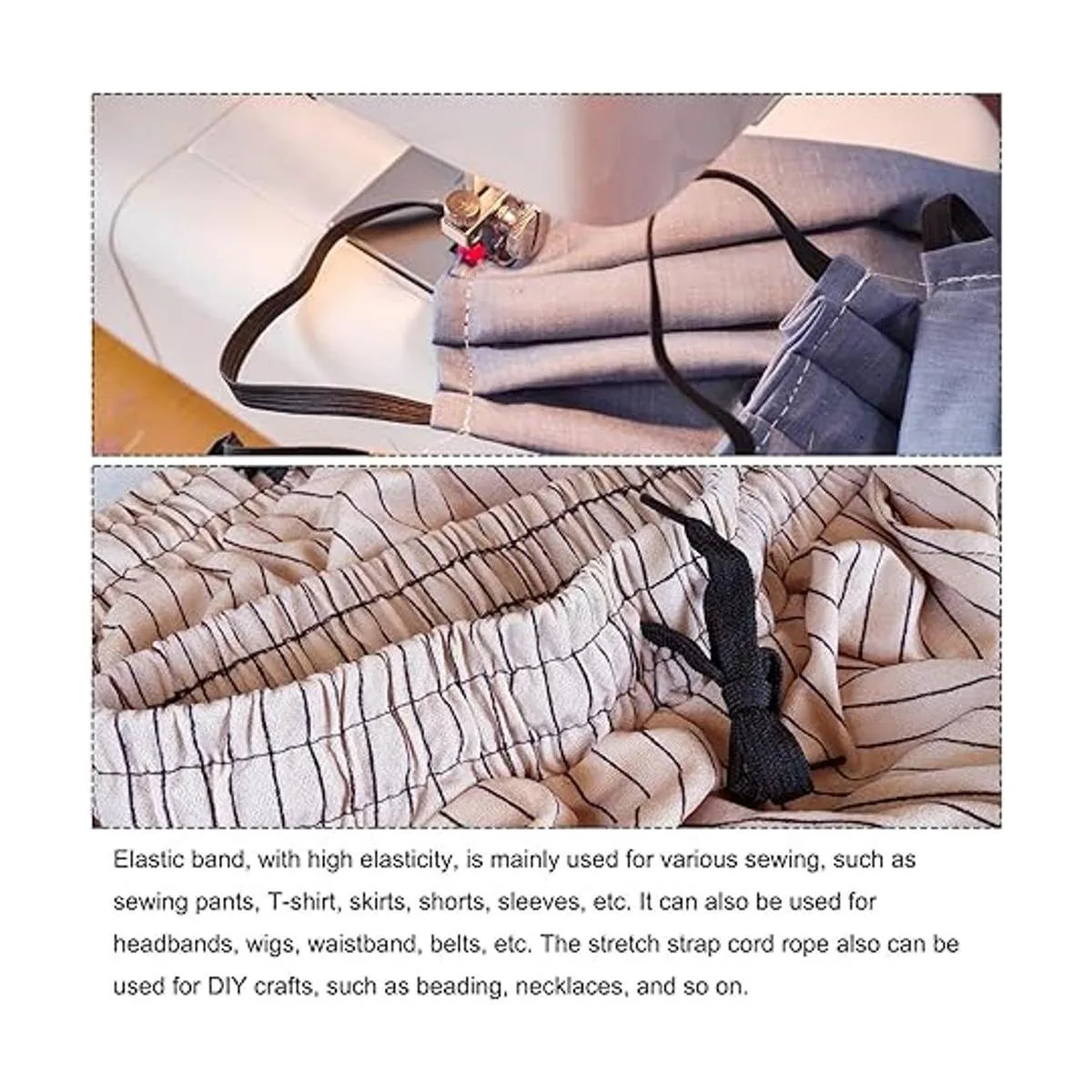 Banda elástica, con alta elasticidad, se utiliza principalmente para varias costuras, como pantalones de costura, camisetas, faldas, pantalones cortos, mangas, etc. También se puede utilizar para diademas, pelucas, cintura, cinturones, etc. La cuerda elástica también se puede utilizar para manualidades, como cuentas, collares, etc.