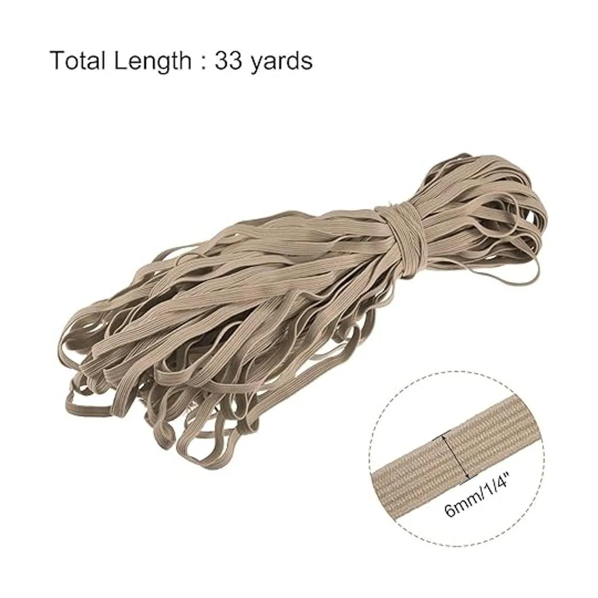 MECCANIXITY Cordón elástico plano para coser de 14 de pulgada, 0.236 in, 33 yardas, cuerda elástica pesada para manualidades, bricolaje, color caqui