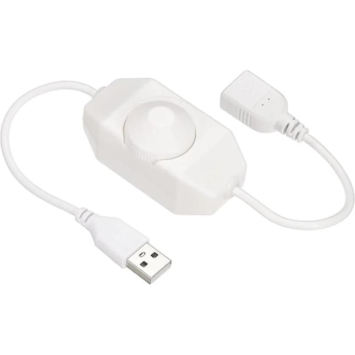 MECCANIXITY Interruptor de atenuación de tira LED de 5 V CC USB hembra a macho cable de extensión con controlador de interruptor giratorio para tiras de luces LED, color blanco