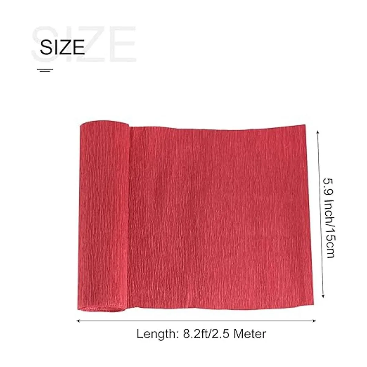 Longitud: 8.2 ft. Ancho: 5.9 in. Grosor: 0.020 in. En el paquete de: 3 rollos de papel crepé. Color: rojo. Material: papel.